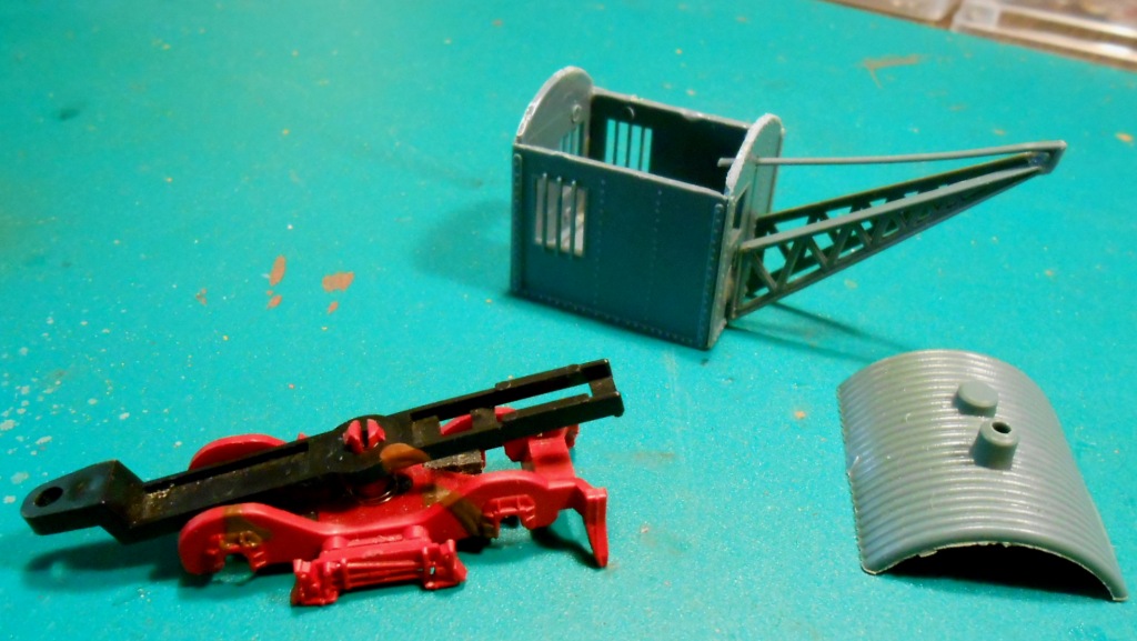 от рампы поакгауза. На тележку поставил колеса и выпилил раму крана из полистирола. Далее предварительная сборка и сравнительное фото. Дали будэ...