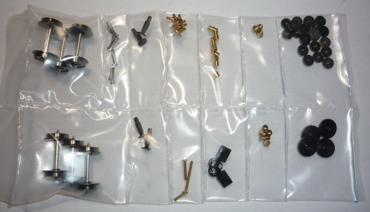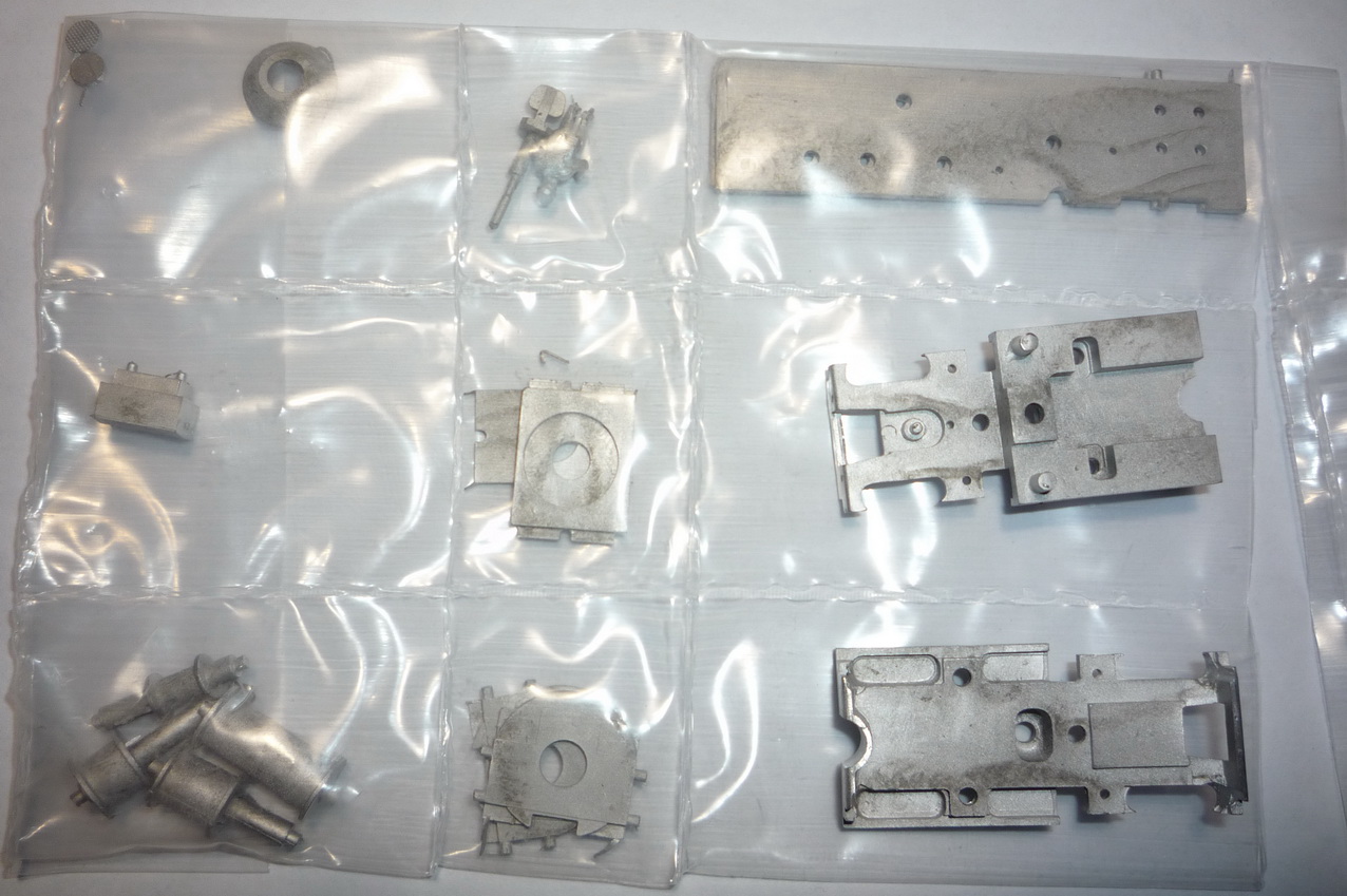Один пакет с бронзовыми литыми деталями, один с буферами, шкивами, колпарами, NEM-шахтами и т.п.