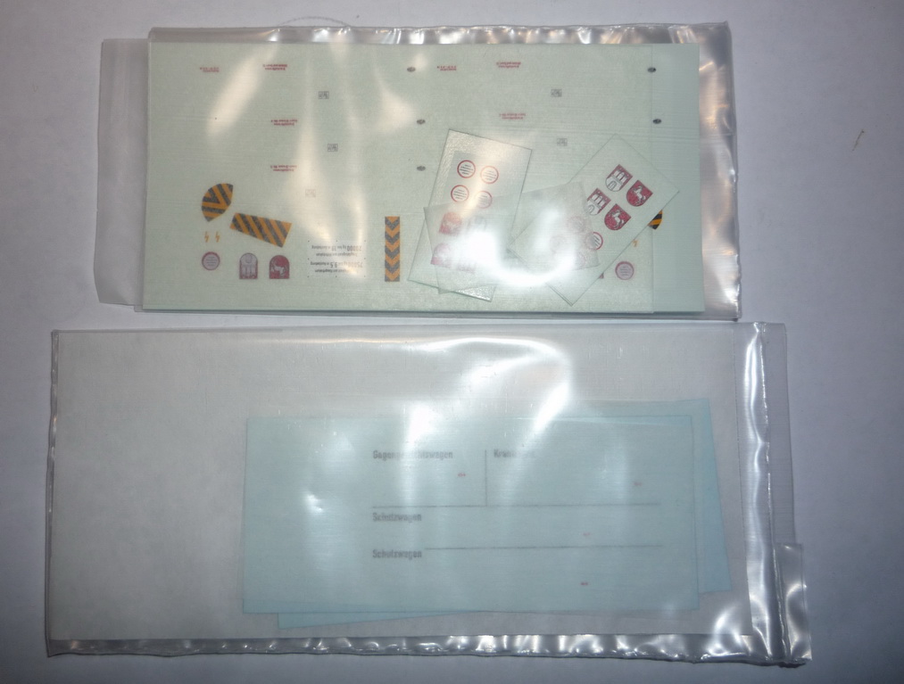 Два пакета с декалями на четыре варианта – один для II эпохи, два для III и один для IV. Причём даны декали для вагонов прикрытия, которые предлагается приобрести у сторонних производителей!