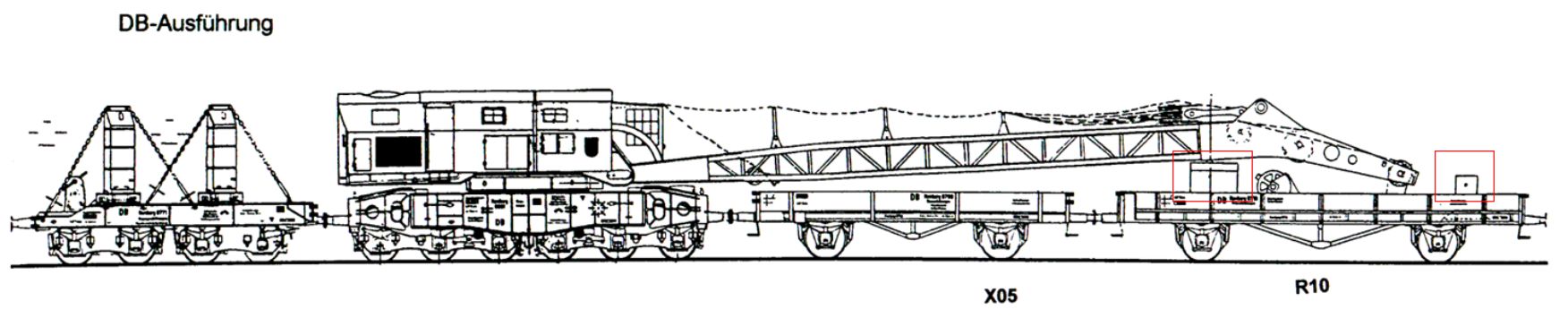 Левая деталь на вагоне R10 - это опора стрелы. Она входит в набор самого крана, отлита из сплава Вуда. Правая деталь - скорее всего просто ящик с откидывающимся верхом для различных принадлежностей. Типа вот такого