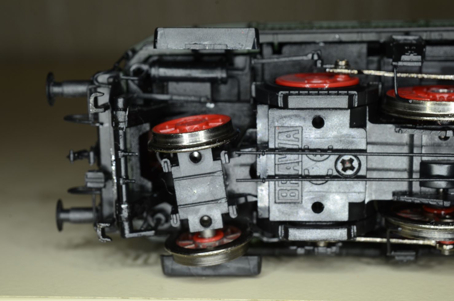Не знаю, как это Браве удалось, но ходовая при макросъемке выглядит отменно! Почти реальный локомотив - насыщенные цвета + плюс движущиеся элементы в меру промасленные - живее некуда 8-)