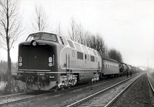 Тепловоз с гидравлической передачей ТГ300, произведен в ФРГ и в единственном экземпляре поставлен в СССР.