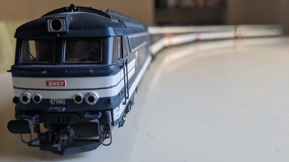 Еще один из первых наших составов, французский тепловоз фирмы Jouef и вагоны Roco, Piko и Lima.