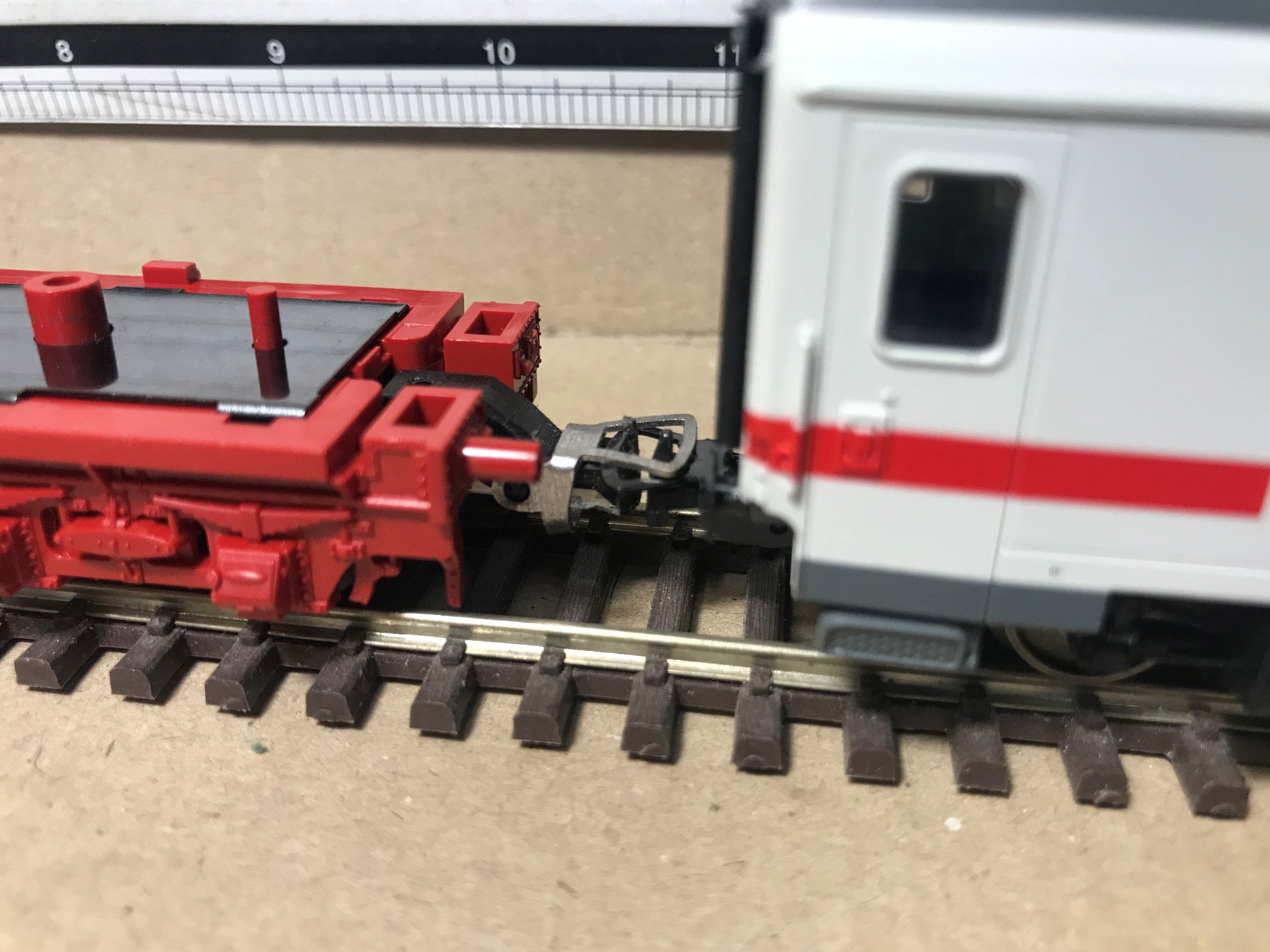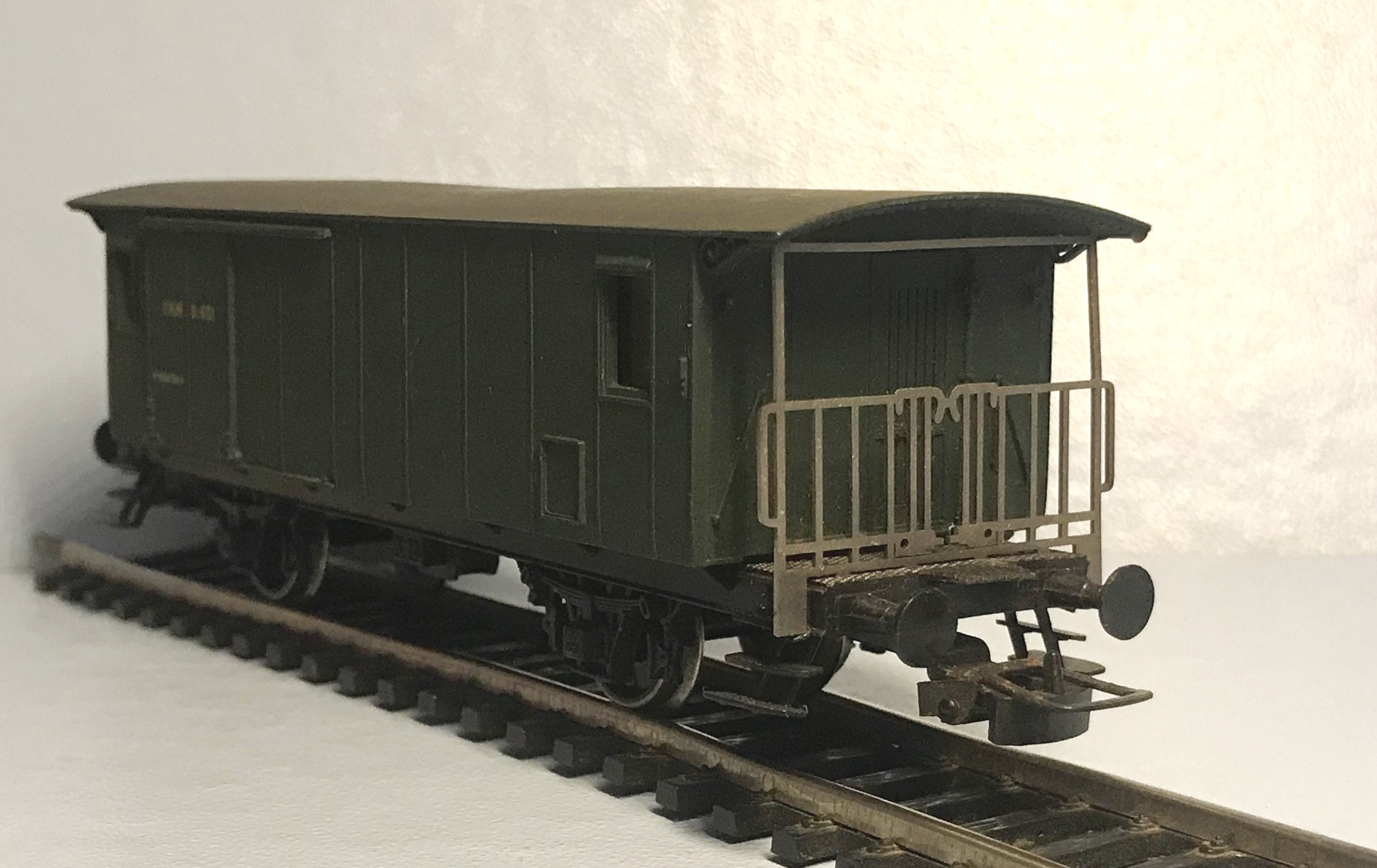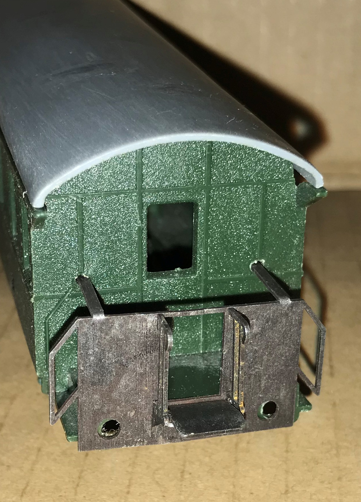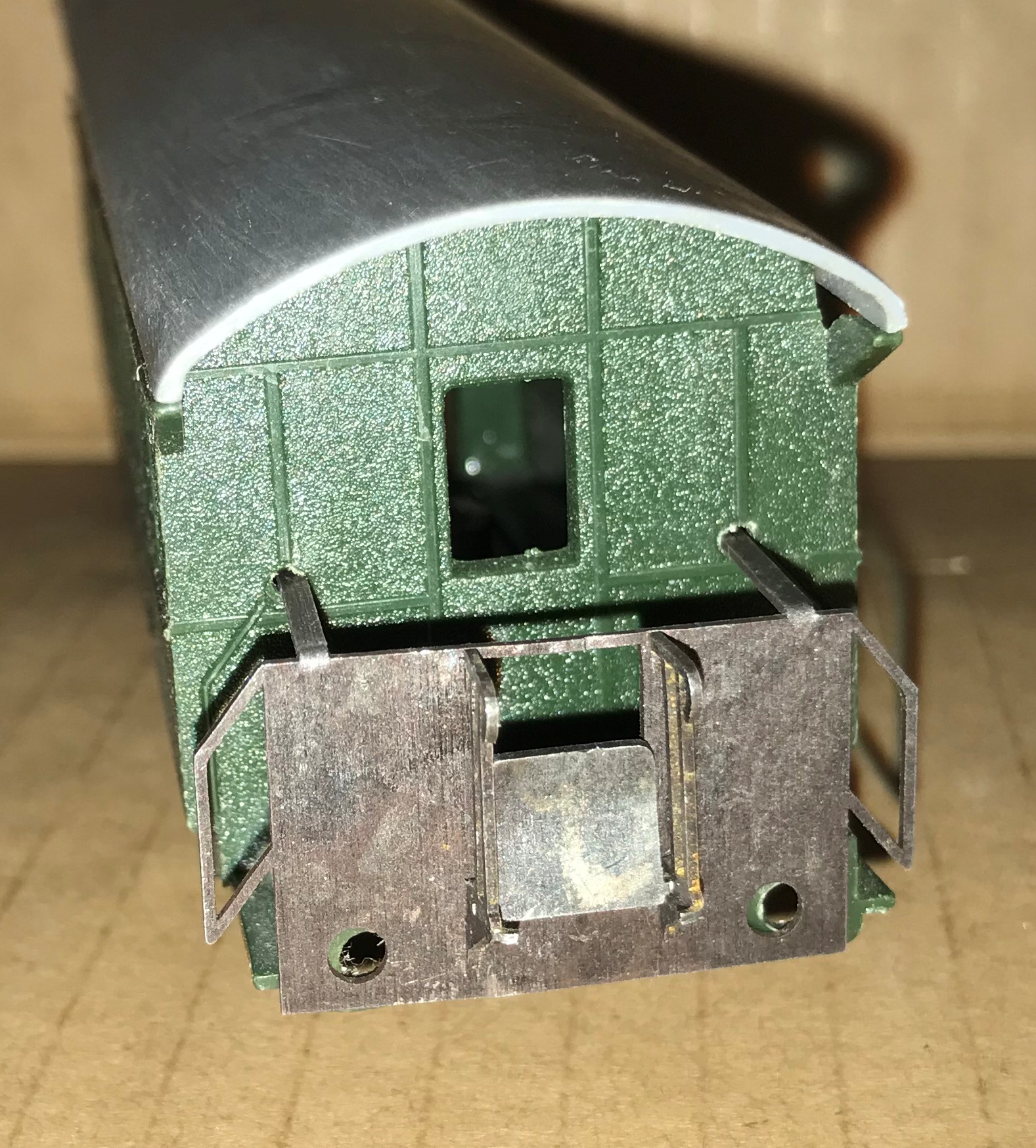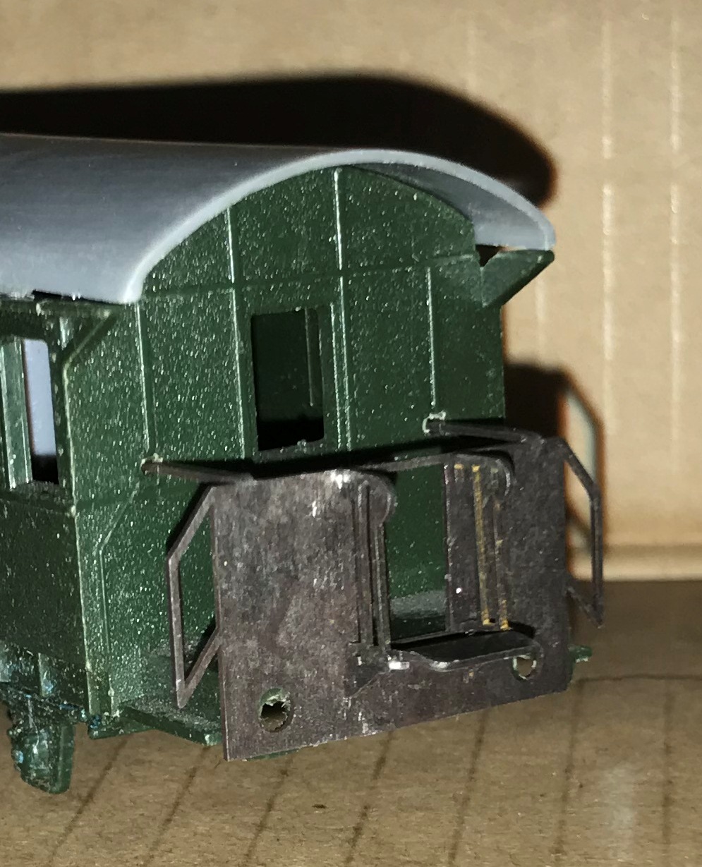 Осталось отогнуть поручни переходной площадки и поставить саму площадку. А так же почернить и покрасить.