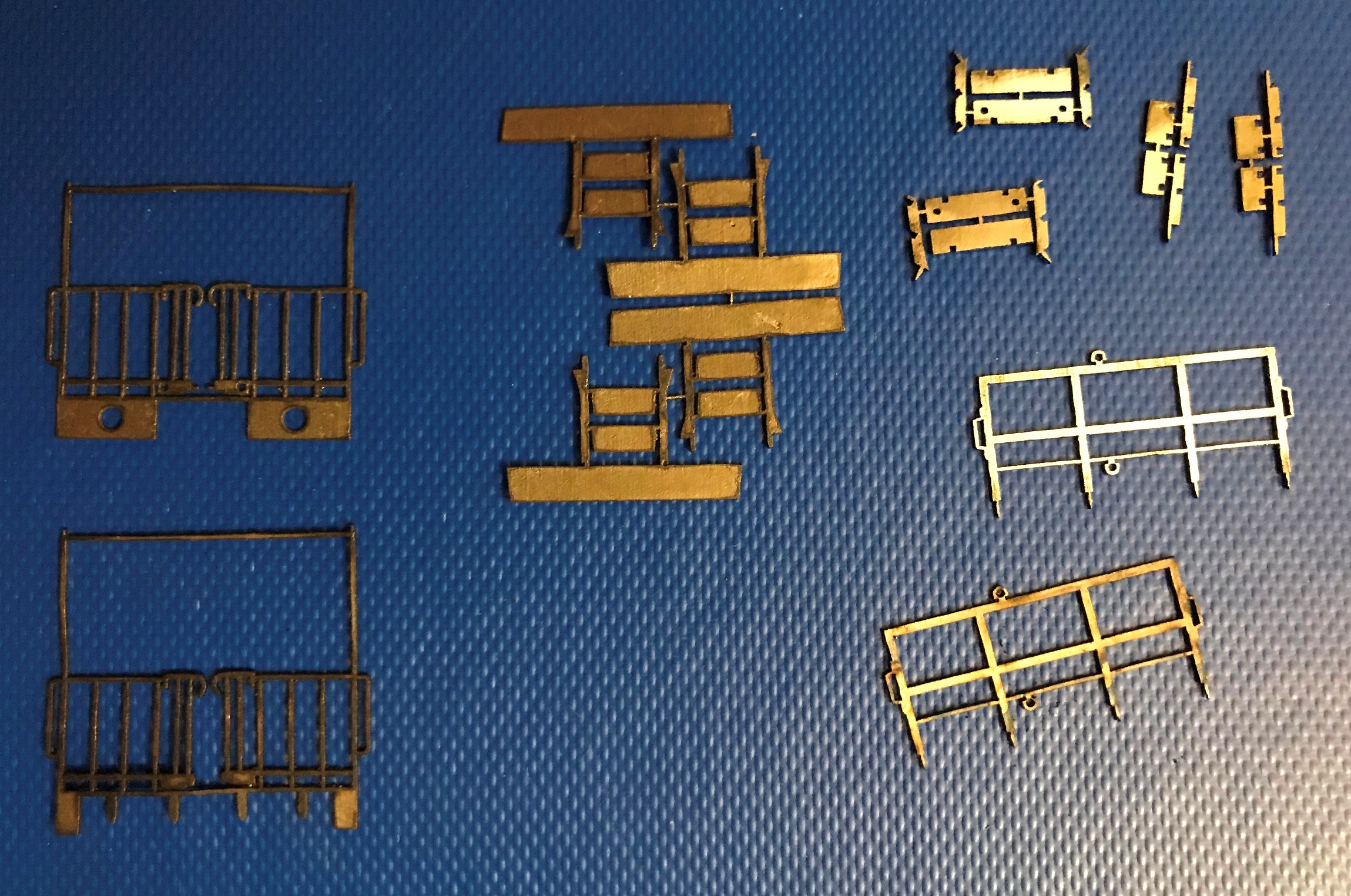 Поручни тепловоза V100. Можно установить и на BR110. Оконные рамы вагонов VIклассв начала 1900-х годов. Торцевые лестницы на немецкие вагоны Rheingold. Набор для придания семиоконнику вида СЖД. Ограждение, перила, переходная площадка. Перила для переделки двухосных вагонов Лима в вагоны Сестрорецкой ЖД. По мотивам ЮрСаныча. Между поручнями будет вставляться переходная площадка (как на верхнем фото). Лестница с площадкой и перилами для цистерн СЖД (модернизированная). Лестницы торцевые для пассажирских вагонов. Позже выложу ещё детали, не всё ещё разобрал.