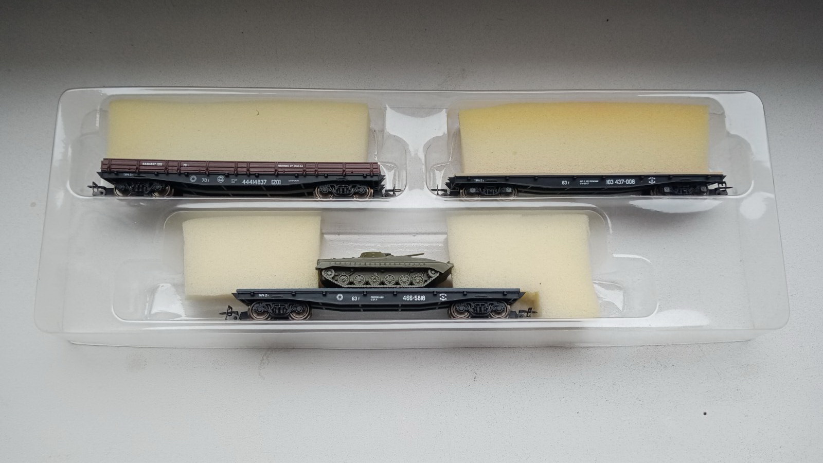 Живорибний вагон, платформа з дерев*яними бортами, критий вагон треьої епохи - продані.