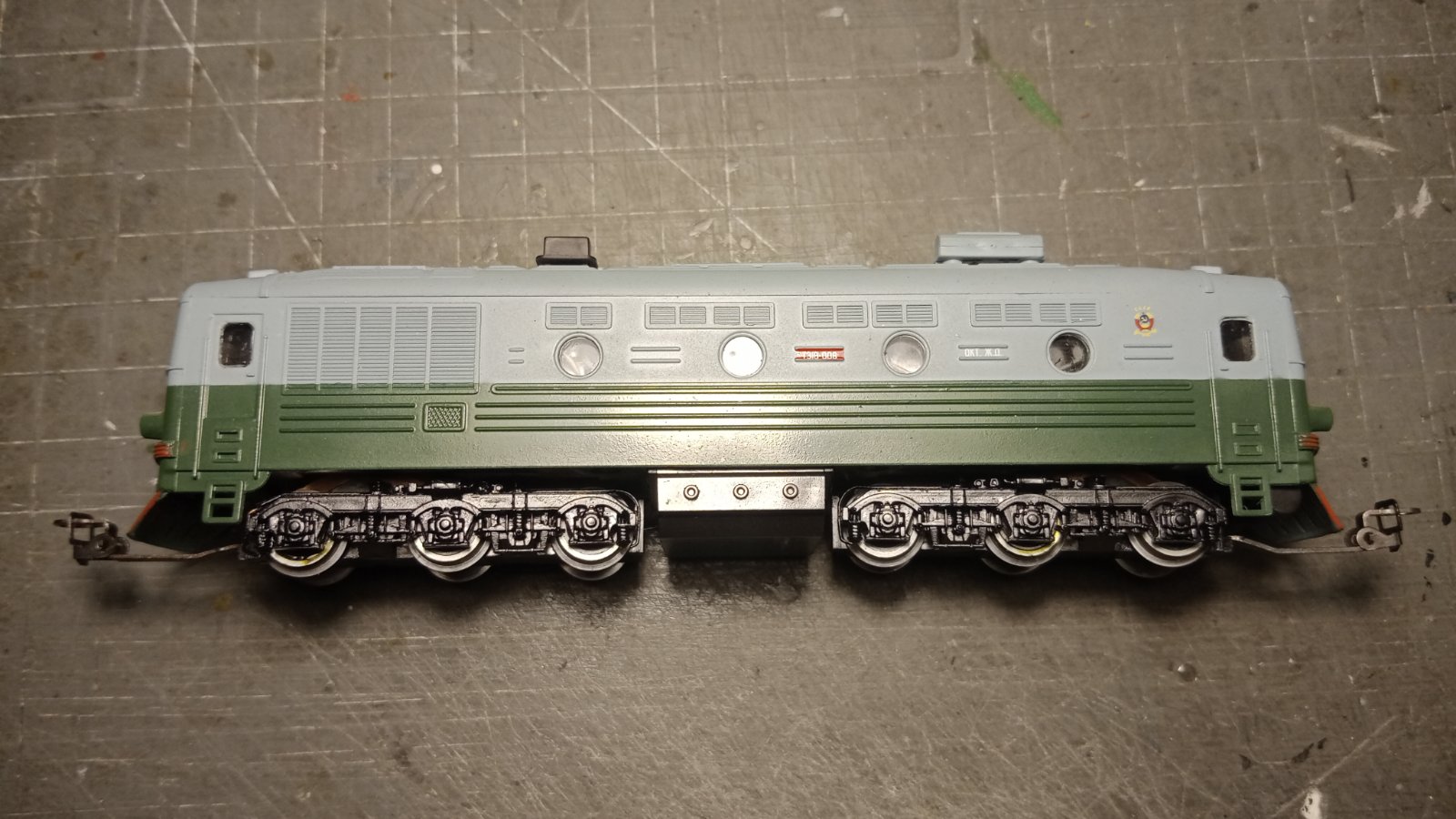 Двосекційний тепловоз ТЕ-3. Модель давно знята з виробництва. Рама роздулась, розкрила кузов. Необхідний ремонт. Ціна 80 євро.