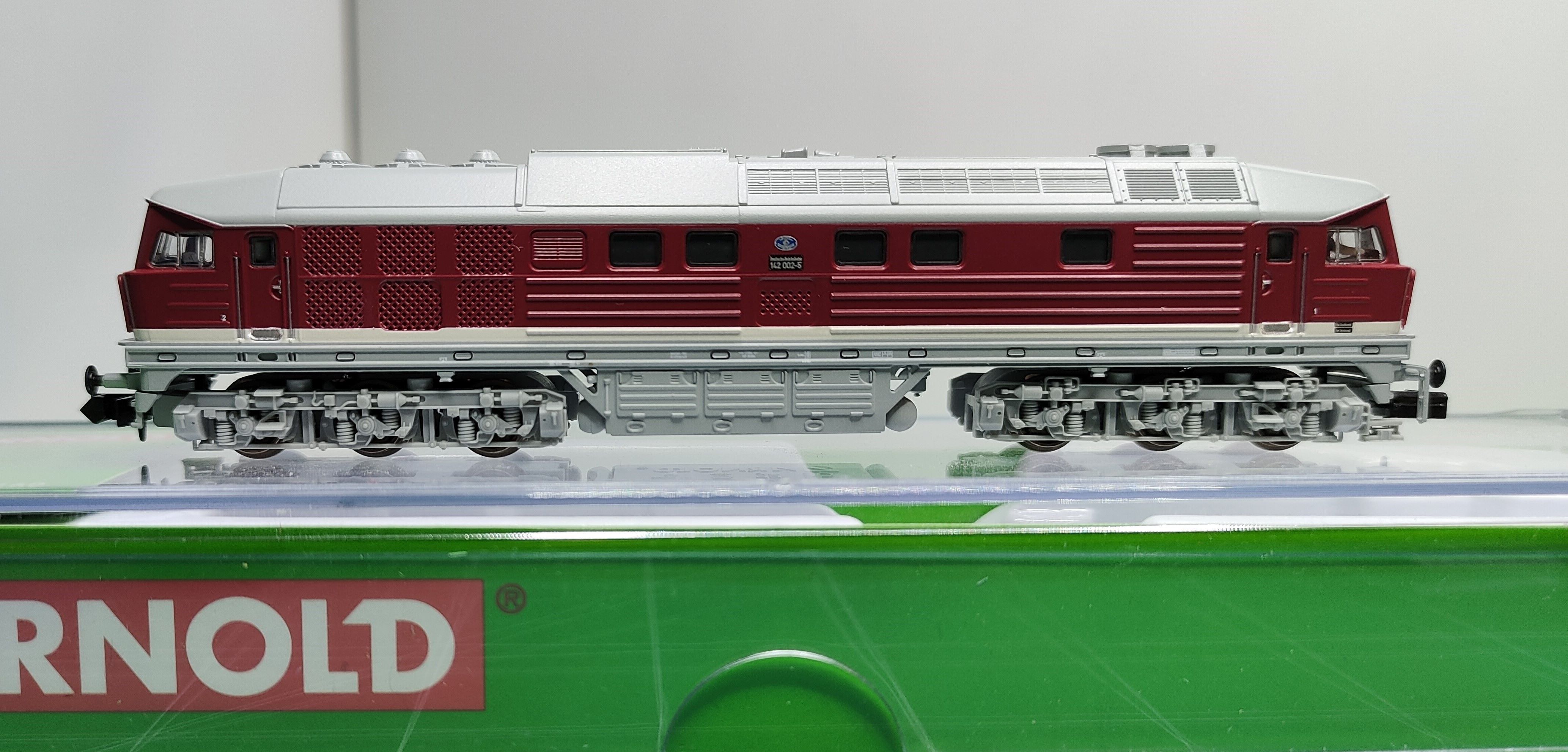 Модель тепловоза BR142. ARNOLD HN2600. Масштаб N (1:160). Модель 2024 року, нова. Має 5 полюсний двигун з двома маховиками. Встановив цифровий декодер. Роз'єм для декодера next 18. Привід на всі колпари. Токоз'єм з усіх коліс. Сцепки з динамічним механізмом. Світло біле та червоне , на смд світлодіодах. Світло в кабіні машиніста ( працює тільки з декодером). Рідний пластиковий бокс з паперами, та 2 додаткові тягові шини. Ціна: 8500 грн.