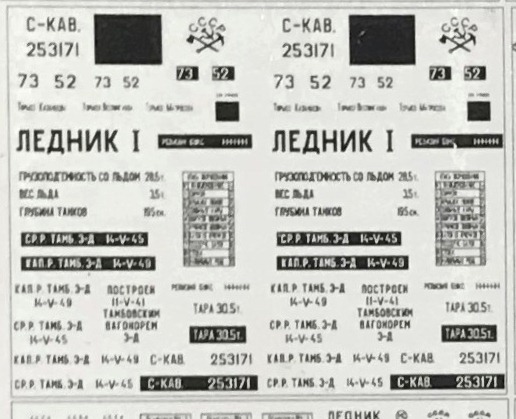 Роздрукував деколі для ледніків, 40-50х років і славнозвісного "Ашхабаду". На "Ашхабад три різних комплекта, точніше один для доповнення оригінального і два додаткових, для саморобок-переробок, з іншими номерами. Білого кольору немає, так що є маски чторного кольору, під корті треба підфарбовувати білою фарбою. Ящо комусь цікаво, пишіть.