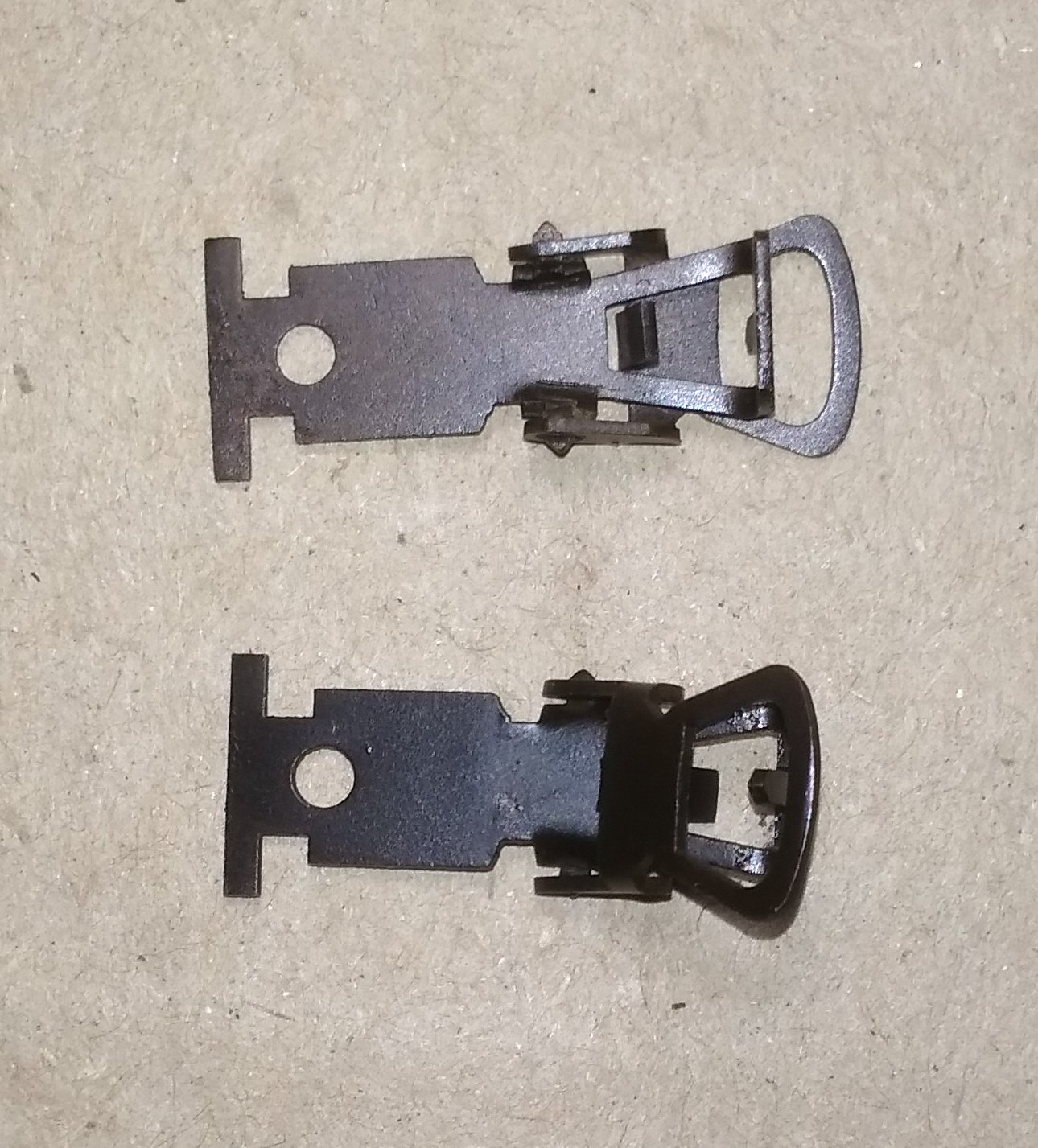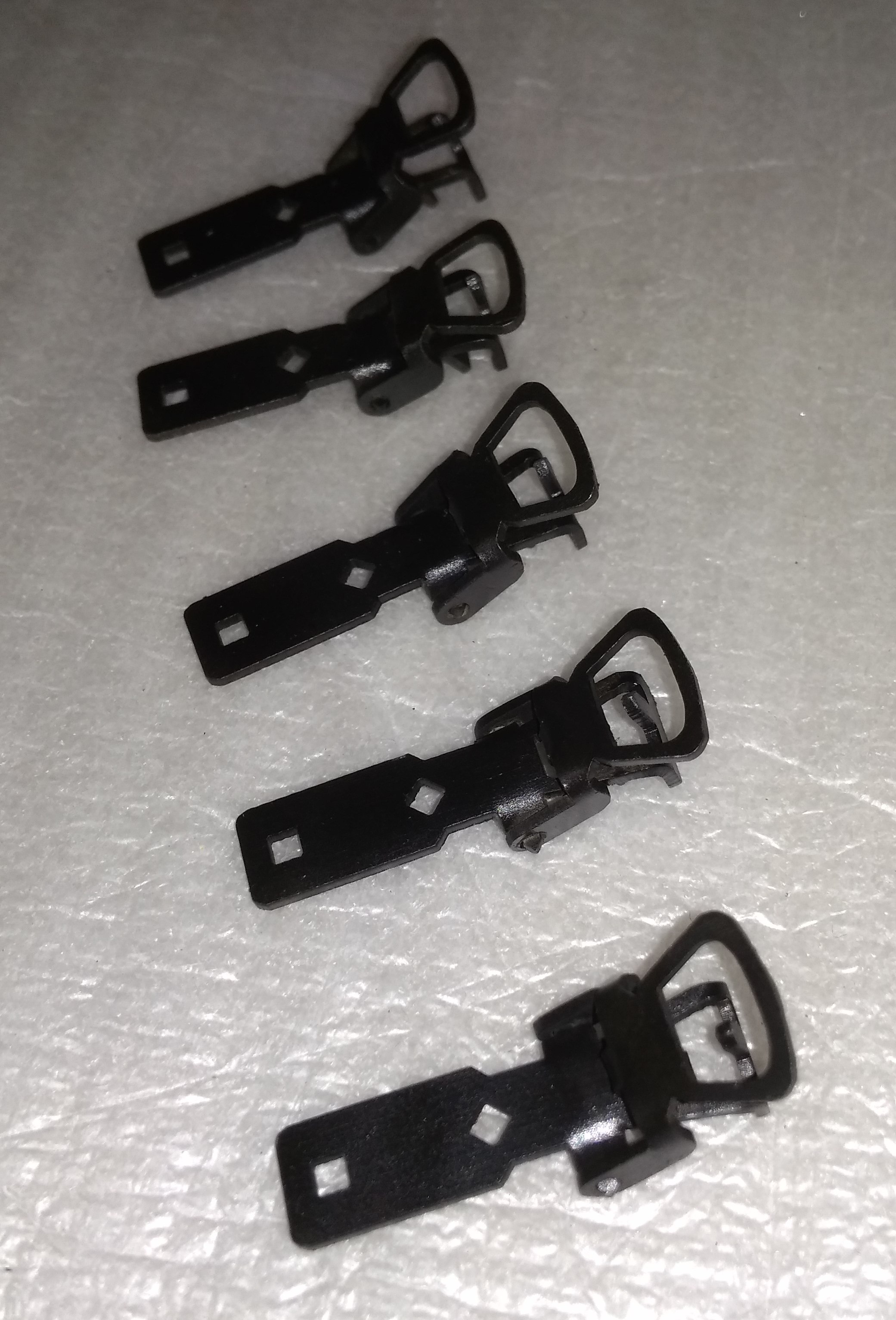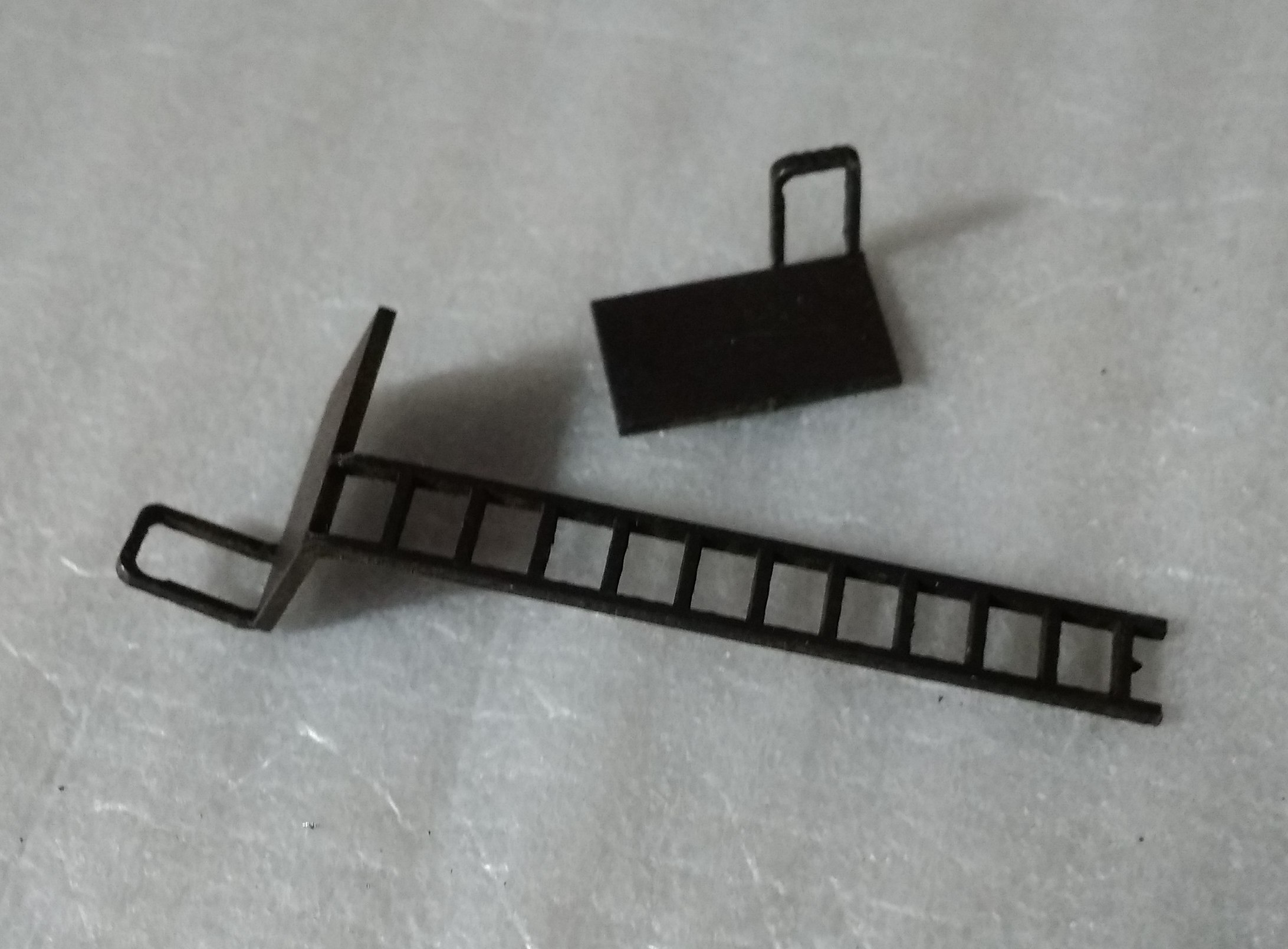 Лестницы для Ашхабада отдельно. Длинная сцепка Пико. Использовалась в старых пассажирских и почтовых вагонах. Сцепка с петлей для замены в юниоровских Бр-80,98. Вместо штатного "крюка". Лимовская петля. Что-то довольно часто попадаются вагоны с отсутствующей этой деталью. Подножки для грузовых Пиковских вагонов. И металлические вкладки для двухосных тележек к ним же.