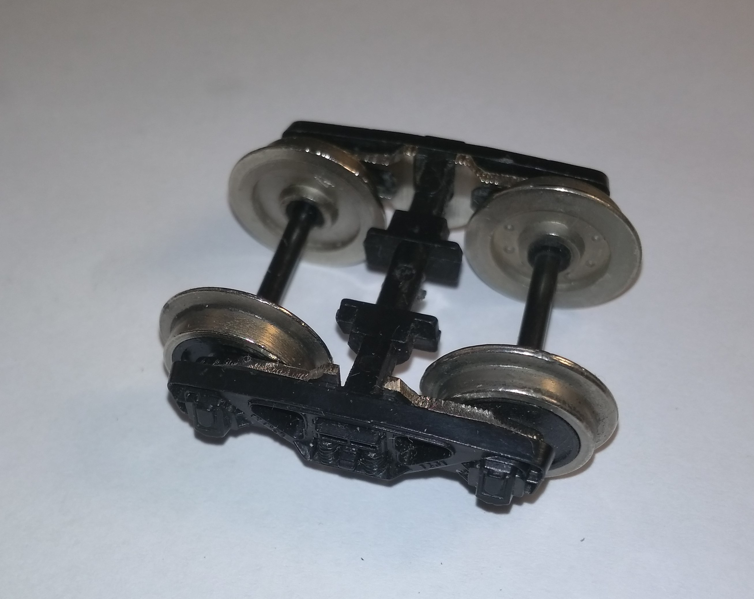 Вставил в тележки металлические держатели. Нержавка 1мм, упругая. Надёжный неокисляющийся контакт.