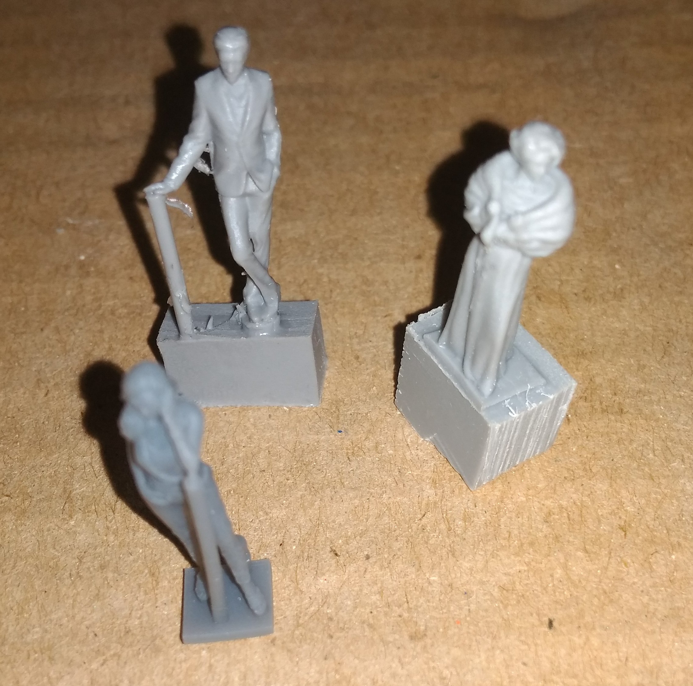 Буферы старого образца, начала 20 В. Буферы с крепежной площадкой и выступом для фиксации (сверлится отверстие в буферном брусе, в него вставляется буфер на клею). Буферы для страрого Пико. Пароовзы Бр-80, Бр-98, старые вагоны от Пико (семиоконник в том числе). И держатели для колесных пар паровозов и локомотивов. Встречал такие в Бр-55, Бр-80, Е-69. Часто ломаюися или теряются, вот и сделал для замены. Есть парочка паровозов для доводки в рабочее состояние. Ещё есть возможность заказать через меня некрашенные фигурки в 87-м масштабе.