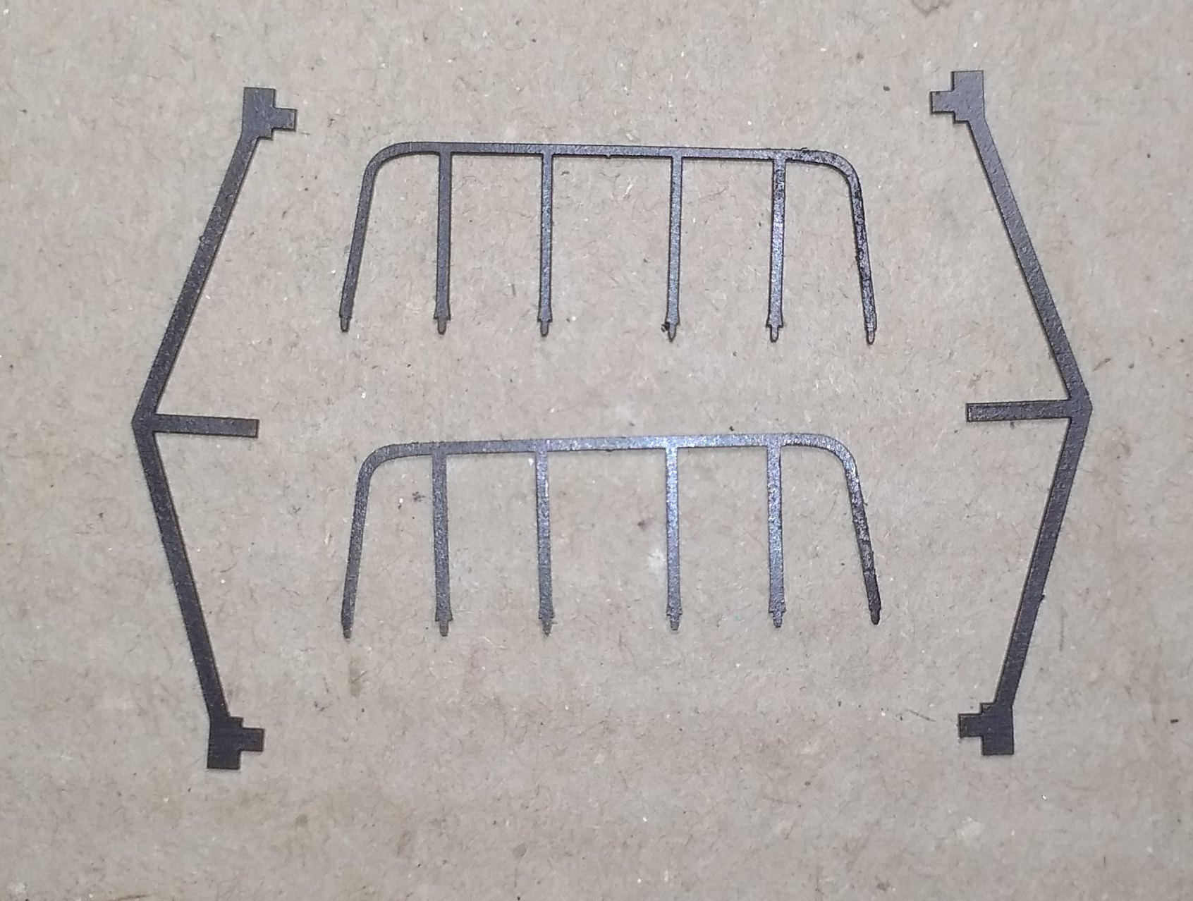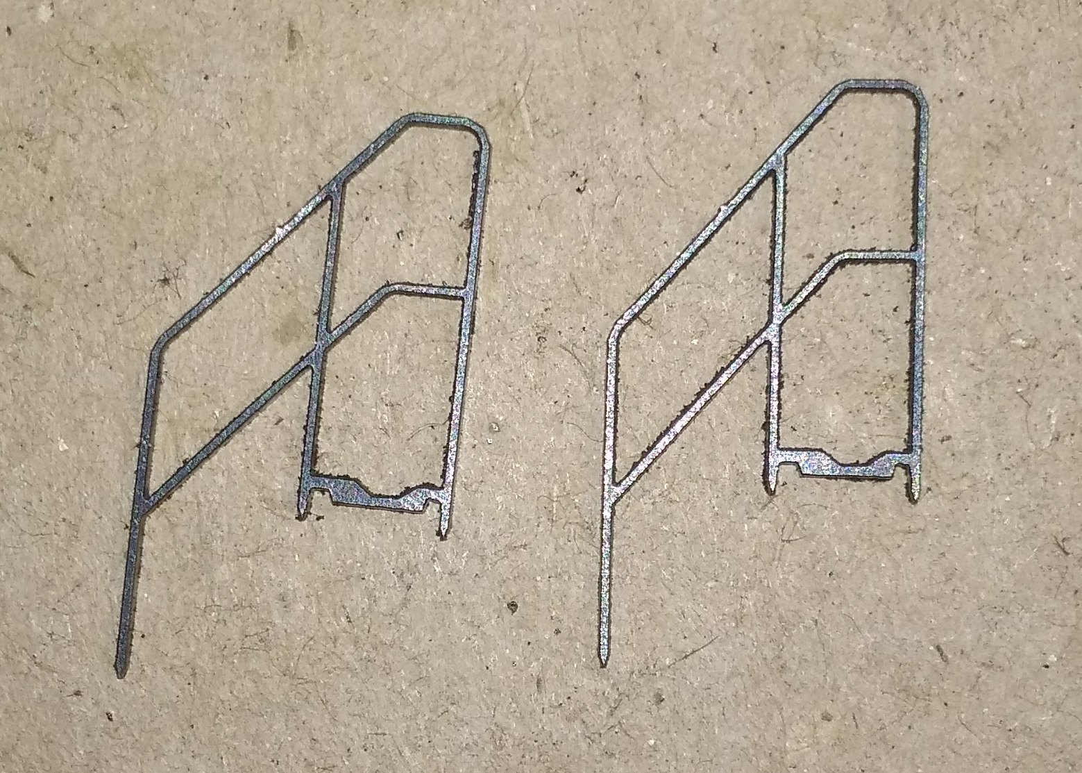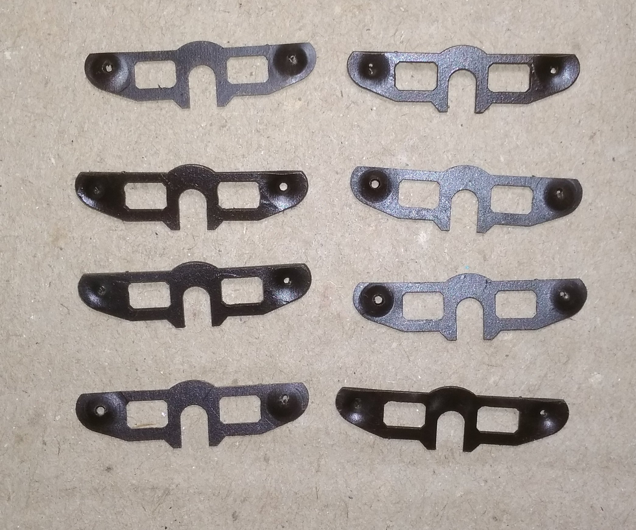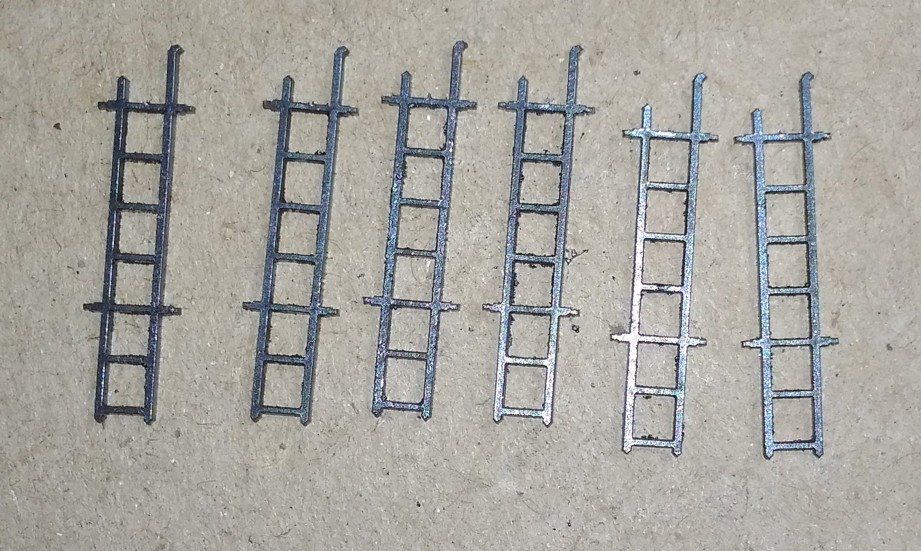 Удалось сделать немного деталей лазерной резкой. Пока выкладваю так сказать, с пылу- с жару. Будут ещё обрабатываться, химически черниться (которые будут черные) и краситься.