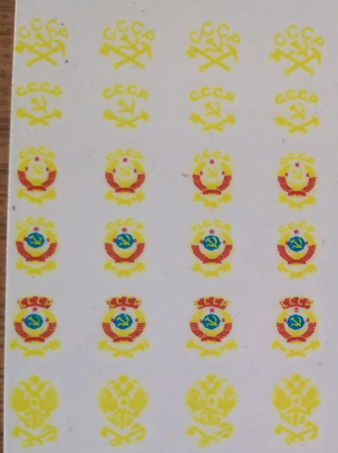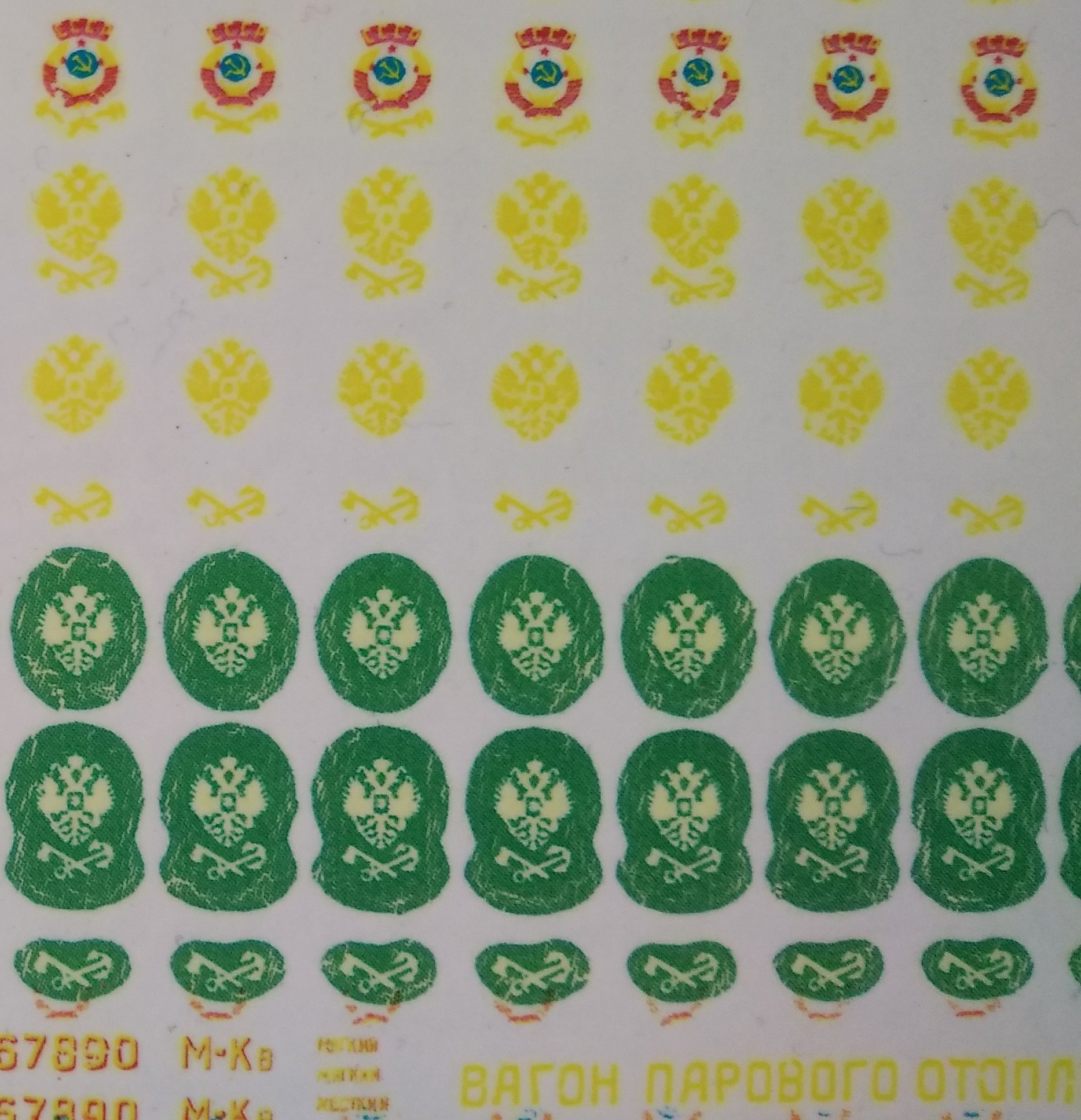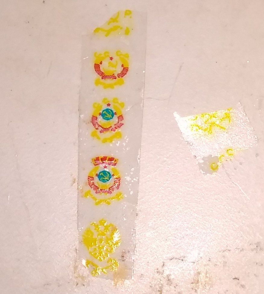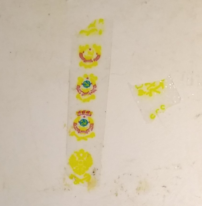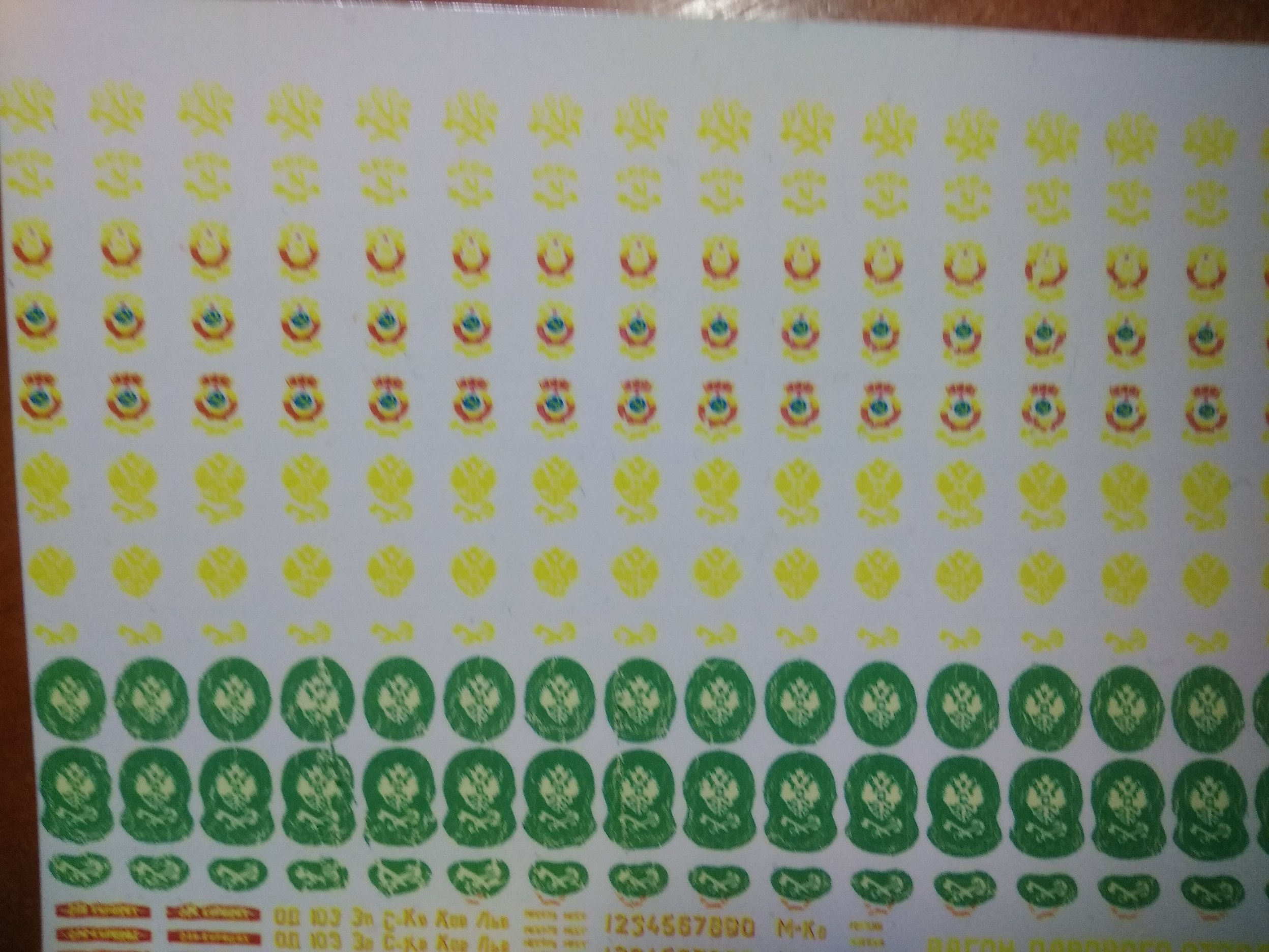 Стал рссматривать фото, что -то чем ниже. тем долее расплыто поучилось. Толи тянет так картридж, толи при покрытии лаком после печати повело. Следующий раз буду отслеживать по ступеням обработки. Гербы СССР получились довольно неплохо. Буду пробовать, как на краску вагона ляжет. КАчество не очень, пересниму потом при солнечном свете.