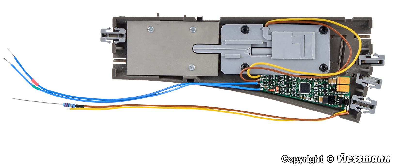 Універсальний підмакеиний моторизований привід с регулювнням концевих вимикачів, перекиданням полярності на хрестовині/пері, з можливістю під'єднання світлофора або виведения інформації про положення стрілочного перевода. Підходить для всіх типів стрілок Tillig, а також інших виробників особливо для стрілок з потребою підключення ізольовоної хрестовини.