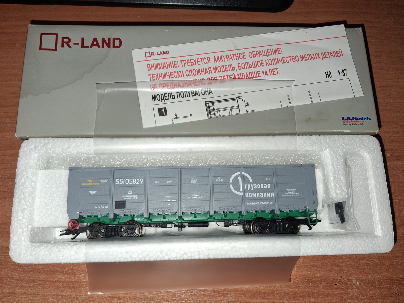 Полувагон R-Land 20601, модель 12-132-03РТ (з роздільним гальмуванням), повністю новий, висока якість та деталювання, металева рама, латунні втулки у візках під колісні пари, накладні деталі не встановлені, в пакеті, 3000 грн. Можливий обмін на пасажирський РІЦ СЖД piko/sachsenmodelle/tillig/acme