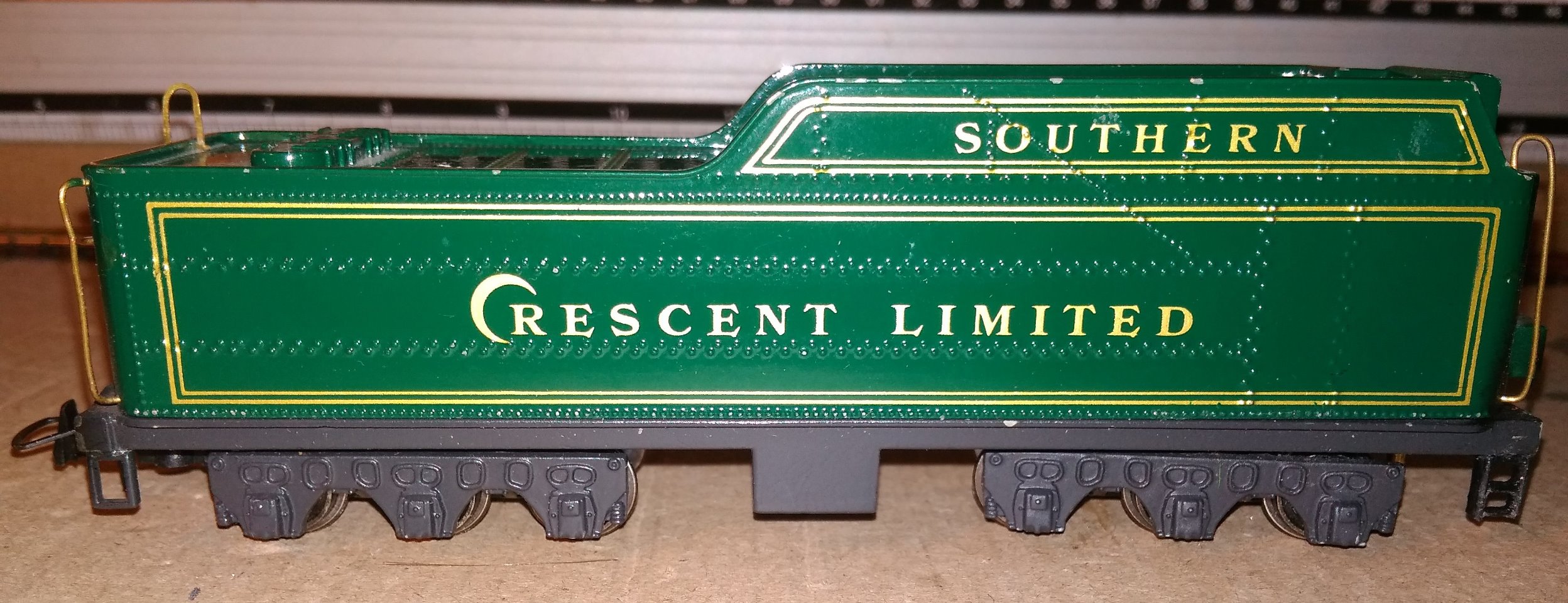 Меняю раритетный американский паровоз 1989 г. Southern Crescent Limited 4-6-2 Pacific Locomotive HO Scale. Немного реставрированный, но соответствует первоначальному виду. Сзади установлена сцепка типа "Петля", но крепеж под родную (скорее всего, кулачковую американского типа, точно не скажу, была сломана) сохранился, при желании можете поставить родную. Ездит отлично, очень натуралистичен в движении. Хотелось бы поменять на "русский декапод", можно под ремонт или реставрацию. Или предлагайте свои интересные варианты.