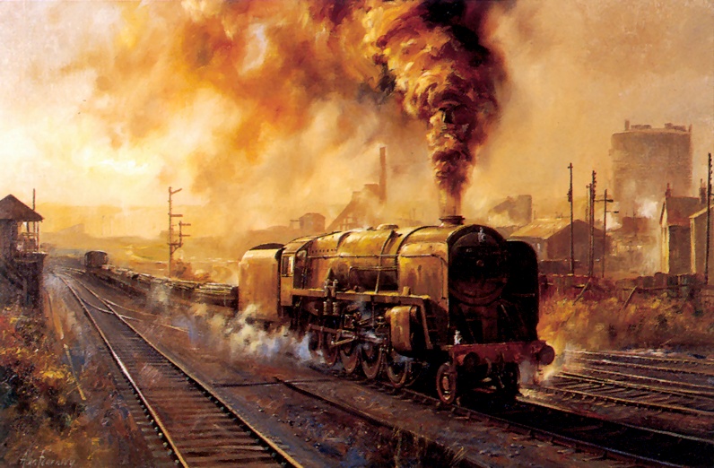 Мда, на каждой картине с паровозом, половину холста занимает дым, дым со всех сторон, брутальные конечно штуки эти паровозы, но этим и притягательны.
