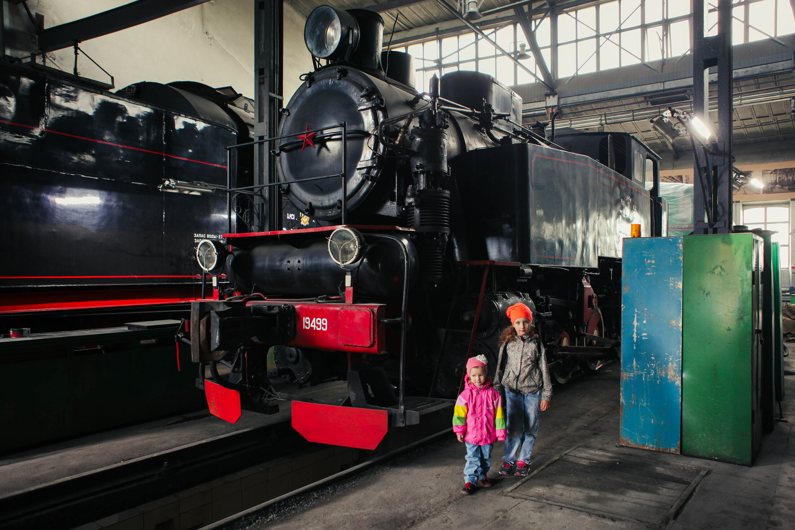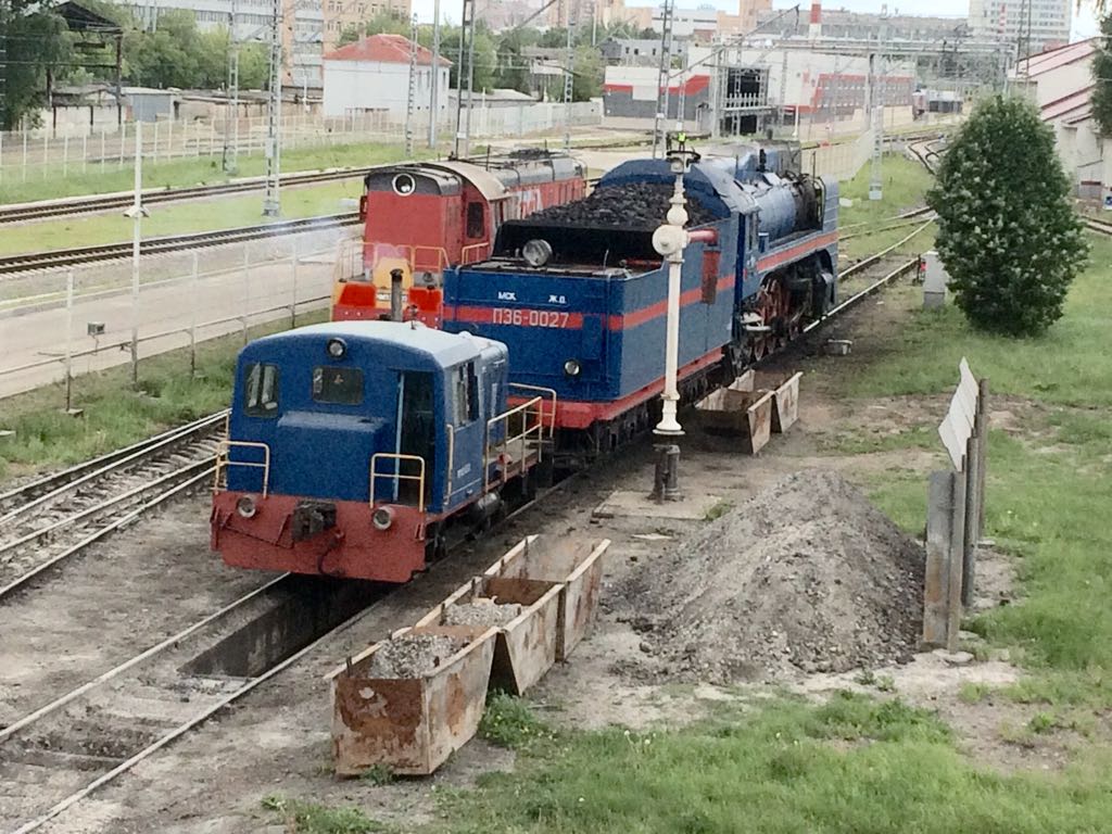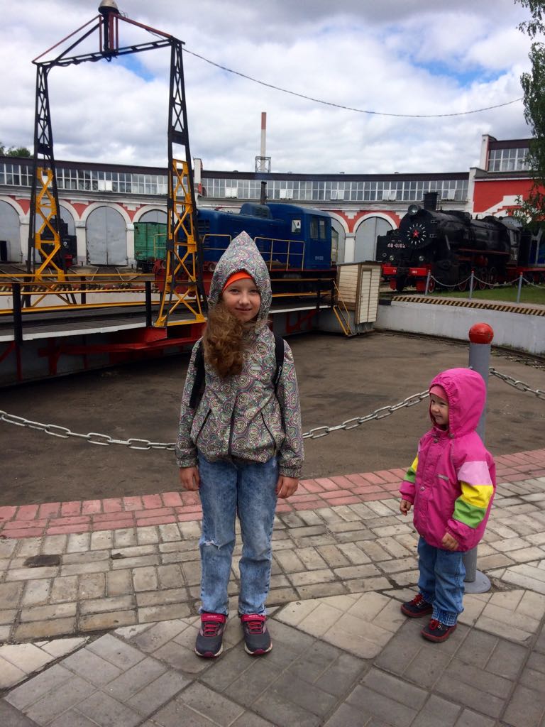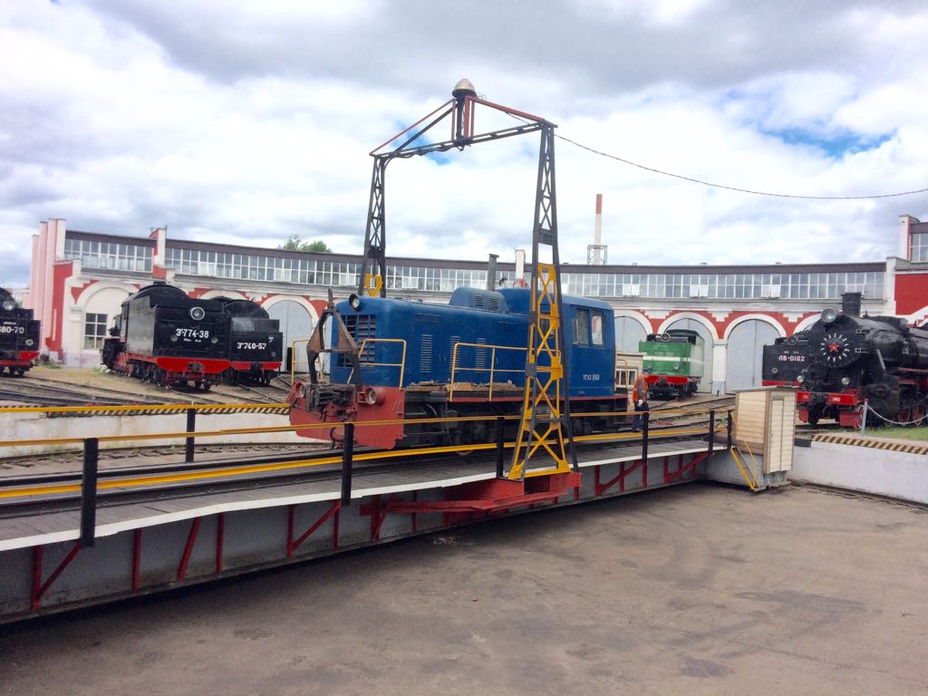 Пока нас встретили, пока мы прошли по территории, ТГК вернулся домой. Лихо крутанулся на веере и стал на улице у депо, подперев один из паровозов. Погода последнее время, очень переменчива в Мск. На улице мы были недолго, так как уже далеко не первый раз что я, что дети. И пошли сразу через мастерские, в закрытую для посещения террторию депо.