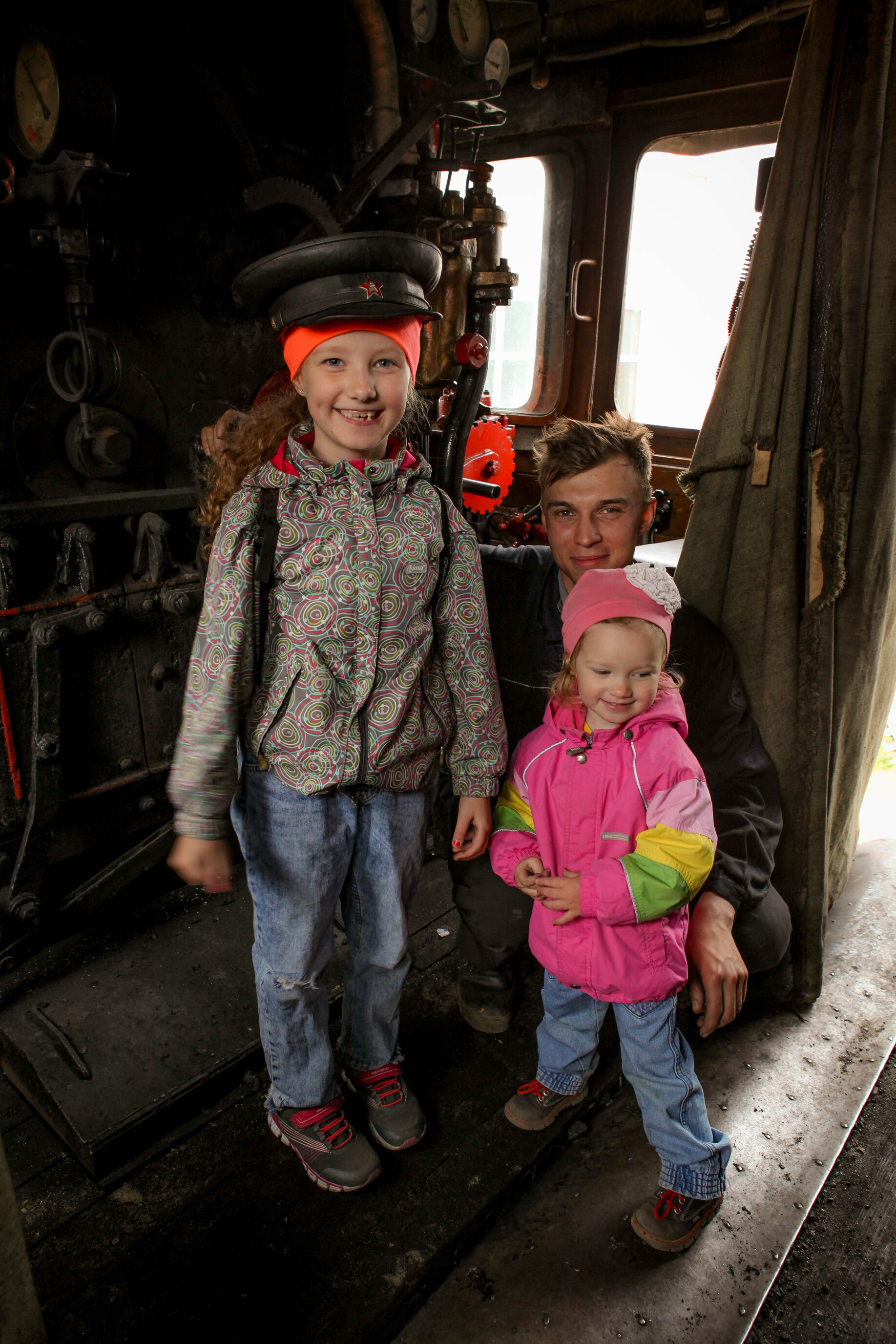 Ну и мои дамы, малость попозировали. С местной живностью познакомились. Угля в топку подкинули для пылу-жару. Старшая убедилась, что работёнка не из лёгких.