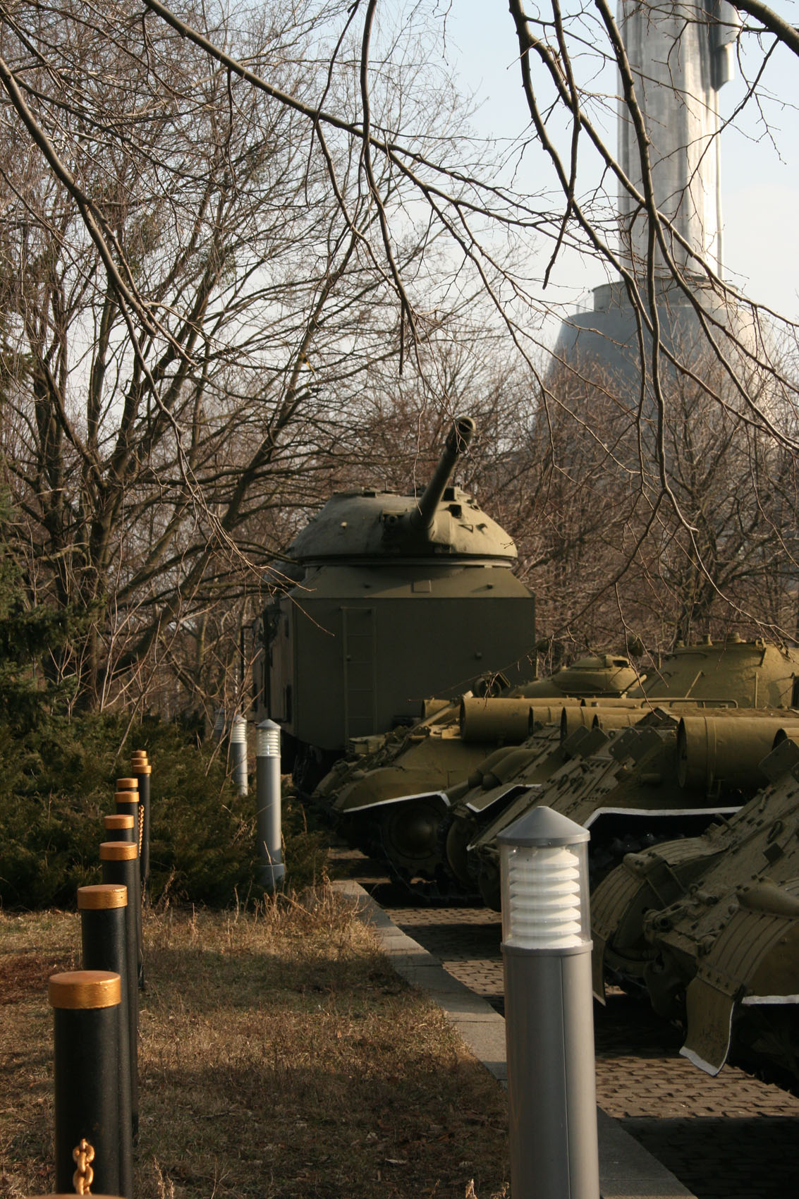 В Киеве возле мемориала Великой Отечественной есть площадка, на которой выставлено немалое количество бронетехники. Там скромненько притаилось нечто с двумя башнями от танка ИС и простыми контурами, металлические листы обшивки не имеют наклона и вряд ли толщину более 10 мм. Не хочу никого обидеть, но мне этот "пепелац" кажется махровым новоделом по-мотивам чего-то, в таком именно виде реально не существовавшего. Поправьте меня, если не прав и кого-то задел за живое. В этом случае заранее извиняюсь. Когда меня пытались там заставить заплатить за съемку (издержки владения зеркальной фотокамерой), я пытался разговорить аборигена, он мне что-то пытался рассказать про то, что "слепили, из того, что было", по крайней мере, я так понял. В Сети об это аппарате ни слова, все, что я нашел - две фотки с более удачного ракурса, чем у меня. Так что сильно не кидайтесь какашками, может это хоть кому-то интересно и пригодится для полноты картины Киева-железнодорожного.
