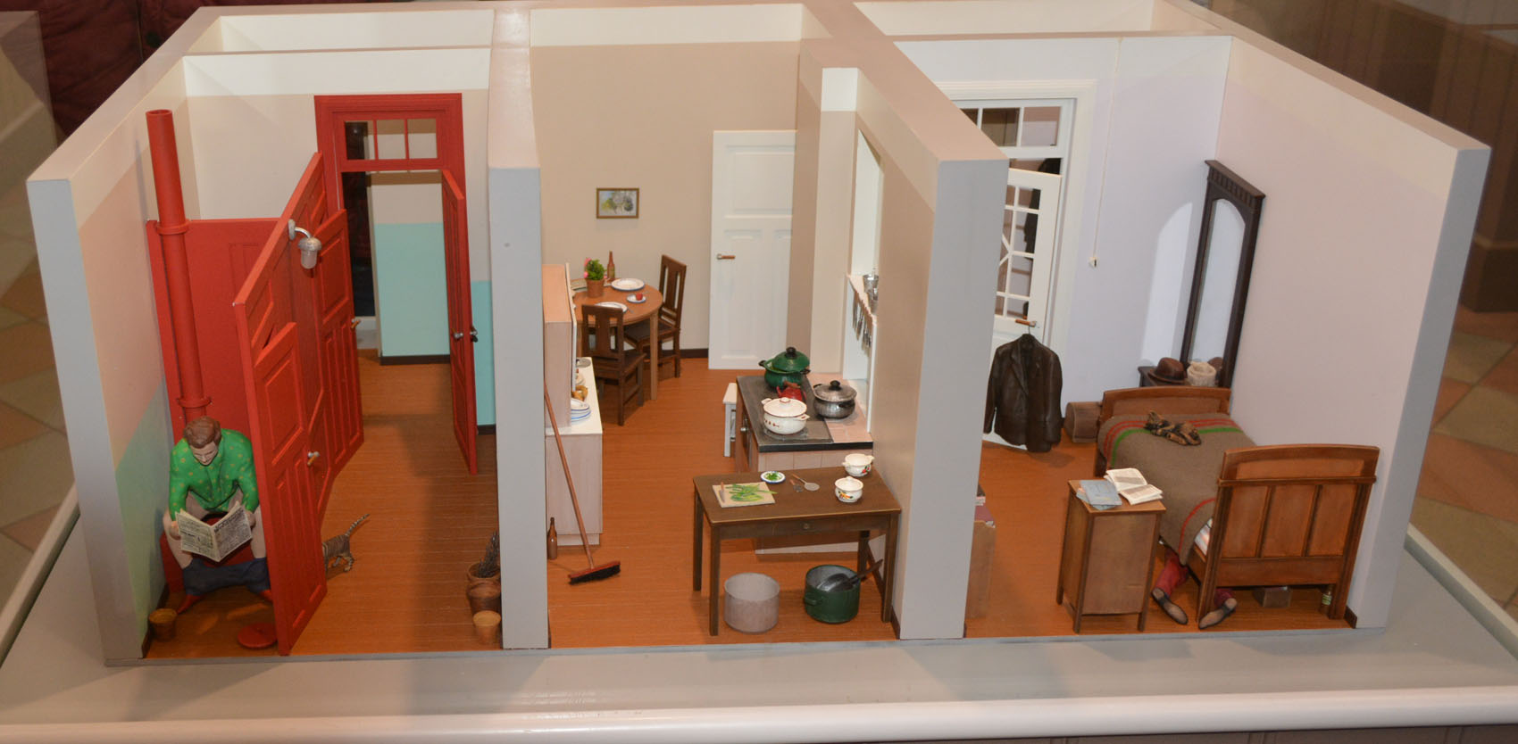Итак, музей небольшой, находится в самом центре, добираться и искать его совсем несложно. Несколько залов с образцами приборов и оборудования, имеется очень неплохой макет в H0, конечно. Работает по расписанию, кажется, раз в час. О нем после. Здесь же знаменитый узкоколейный паровоз M1-657 "увековеченный" в модельке (сильно упрощенной) в масштабе TTe, "единоверцы" ее знают, как минимум по "Пересвету". Мог ли я пройти мимо и не отдать 5 евриков за кусок крашеной зеленым пластмассы? Мог. Мог вообще не заходить в это место. Но если проснется совесть у Пенсионного фонда и он таки перечислит то, что должен, то местный магазинчик еще немного обогатится. Имеется большой зал, лофт, занятый только по периметру узкоколейными платформой, снегоочистителем, "пассажиром" и нормально колейным вагоном. Еще "морда" ТЭП-60, ну совсем, как охотничьем замке и напольные мегавесы. Вроде, зал используют для корпоративов, но я не уверен. Вагоны с интерьерами, все восстановлено и отреставрировано, но скакать по трапам и настилам я не очень могу, поэтому тема осталась нераскрытой. Вообще, многое сделано не только с любовью, но и юмором. Макеты интерьеров железнодорожных помещений, это что-то! Покажу самый шкодный. Куколки с образцами формы вращаются при нажатии кнопки, есть и и настоящая форма. Из сотни фотографий выбрал более-менее нормальные, планирую загрузить в 4 сеанса.