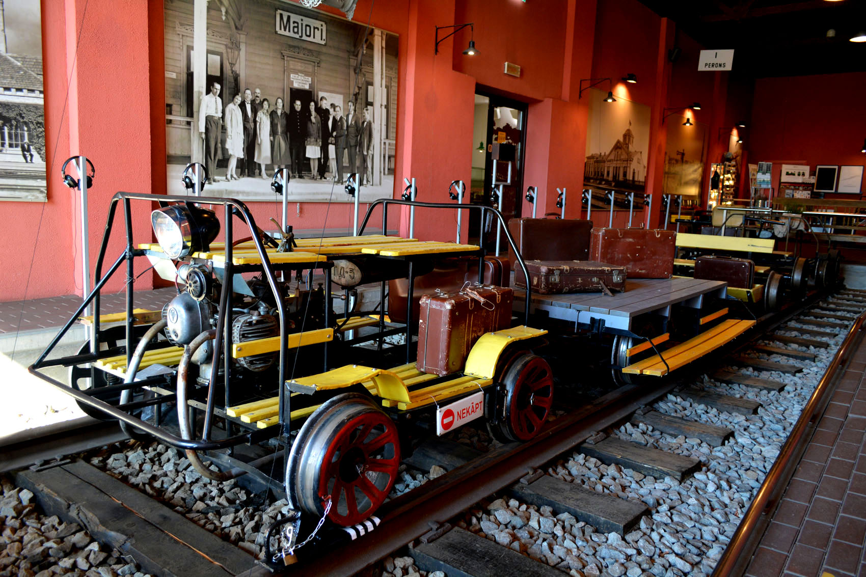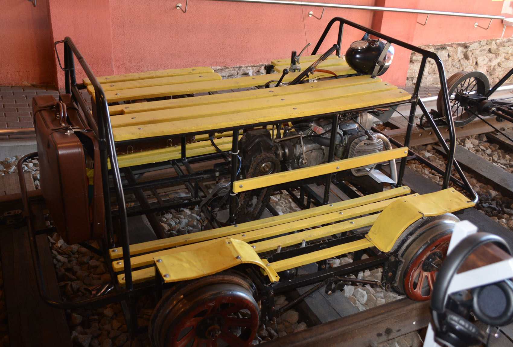 На входе, еще до кассы, имеется шикарная коллекция дрезин. Вряд ли где-то собрано больше. Здесь комментировать почти нечего, все и так понятно. Только добавлю, что одна из них с прицепом для багажа.