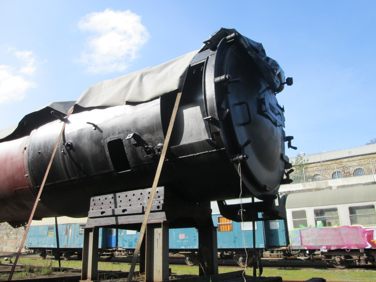 топка паровоза ждет своей очереди установки на место