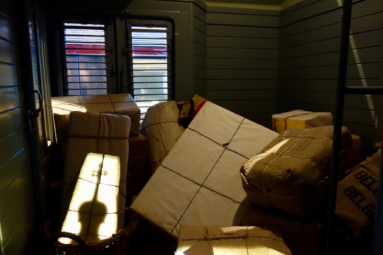 В продолжение темы комфортных поездок, авторы музея разместили по соседству то, что можно, наверное, считать вершиной комфорта - вагоны из королевского поезда. Всего SNCB сохранило 6 вагонов, составляющих два поезда: начала XX века, использовавшихся королями Леопольдом II и Альбертом I, а также конца 30-х годов (короли Леопольд III и Бодуэн). В музее выставлено два вагона: 1901 и 1939 годов Внутрь не пускают, можно только в окошко заглянуть. Если верить текстам надписей, после Бодуэна, который правил до 1993 года, короли стали ездить обычными вагонами. Можно считать это рекламой уровня комфорта современных бельгийский поездов