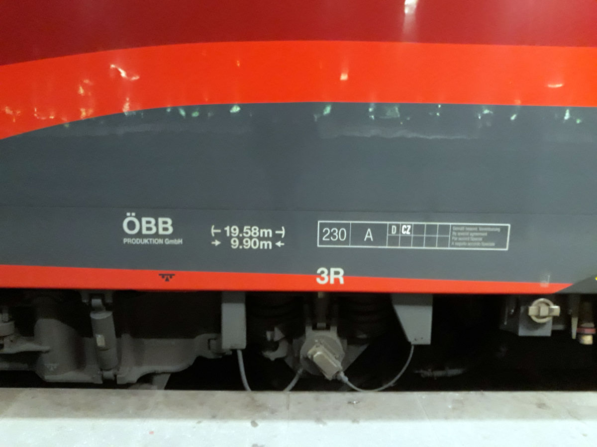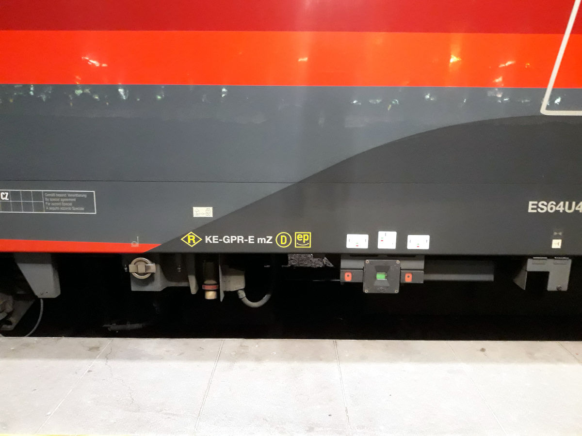 Некоторые элементы и надписи экспресса отсняты более крупно, на случай, если кому удастся сравнить с моделью. На фото два поезда, с разными локомотивами, но однотипными. В Чехии ходит только трехсистемный ES64U4. Кстати, локомотив именно этой серии является обладателем рекорда скорости для электровозов в 357 км/ч.