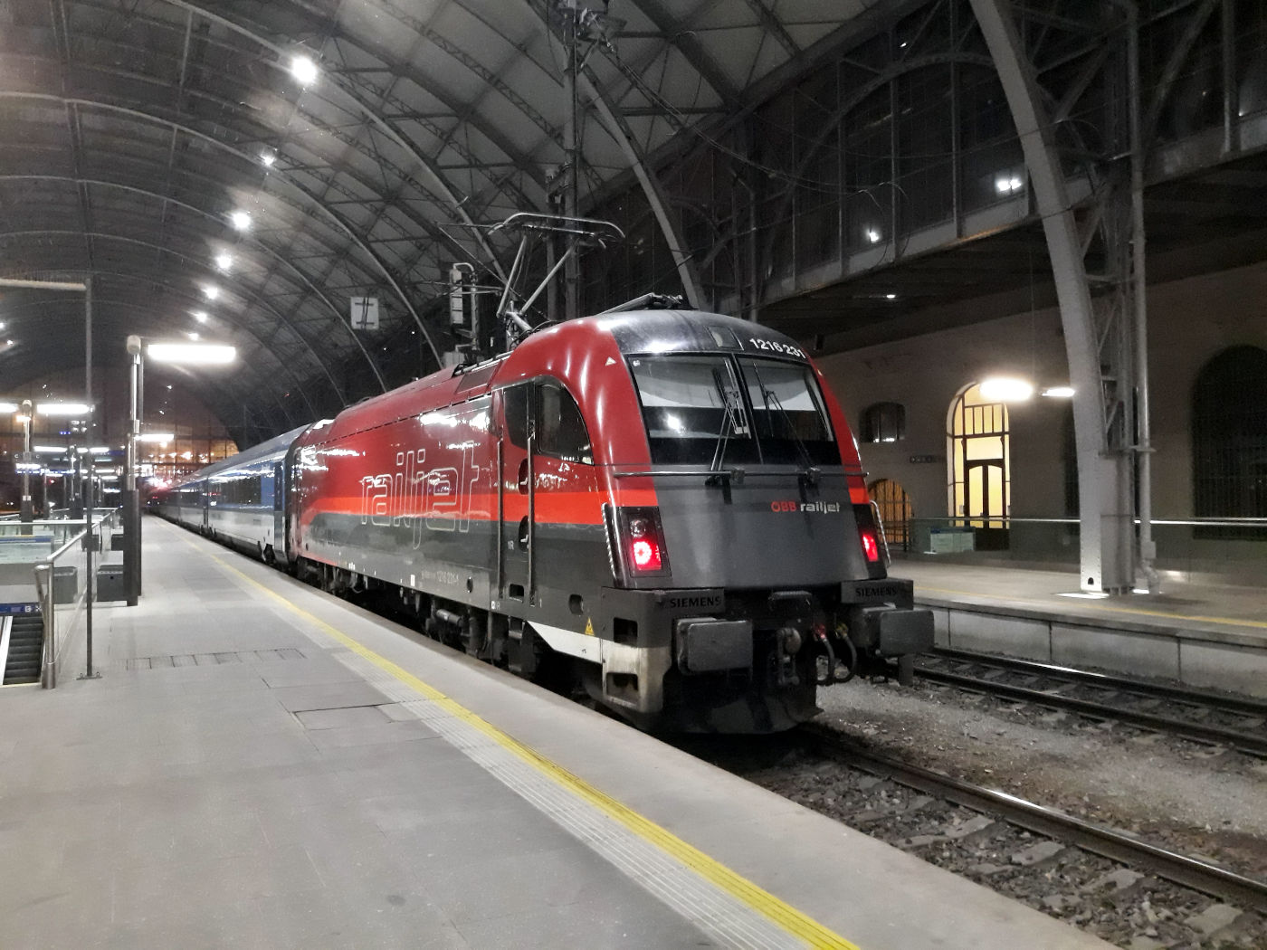 К сожалению, из-за тумана, холода и короткого светового дня (дело было в конце декабря) из поездки в Брно осталось довольно мало фотографий - это стало ясно сразу, как только в салоне "Виндобоны" воцарилась спокойная атмосфера поезда, везущего людей к рабочей неделе, и автор этих строк стал подводить итоги дня. Материальных итогов оказалось негусто, и оставшееся время можно было смотреть в черное окно на буквы "Railjet", пока, подгоняемая черно-красным локомотивом, "Виндобона" всю дорогу до Праги летела не ниже 160 км/ч, спотыкаясь о стрелки на мелькающих станциях, и в кривых пела - настанет гневный день, а за окном была длинная и тихая декабрьская ночь.