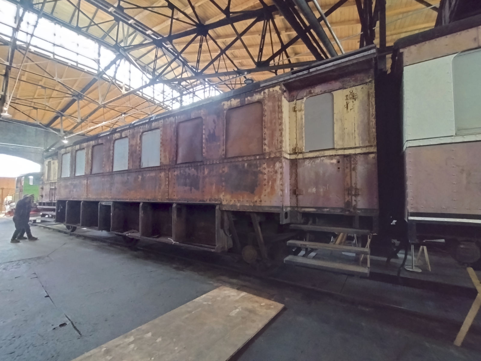 А вот еще один вагончик - очень редкий тип, которых в Бохуме оказалось почему-то аж два, разных периодов постройки. Это вагон для эксплуатации на линиях с прямым сообщением с Англией, приспособленный для перевозки на паромах и имеющий английский габарит.