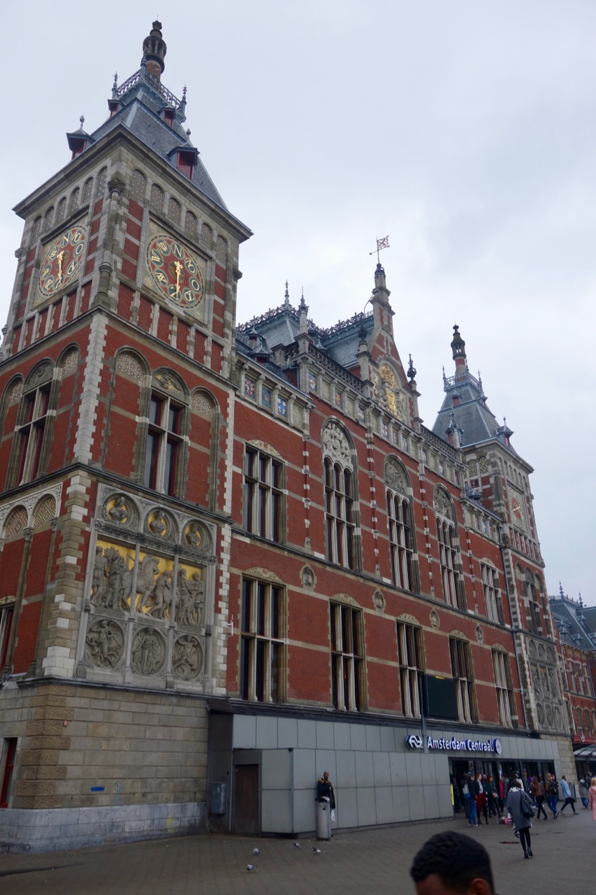 Добраться до стартовой точки можно с главного вокзала Амстердама, выглядящего просто роскошно Трудно поверить, что эта громадина построена на сваях посередине бывшей гавани. Как, впрочем, и значительная часть зданий в центральной части города. Голландцы любят повторять, что другим народам земля досталась от бога, а они свою создали сами. Но чтобы так строить ВОКЗАЛ... И да, высота города над уровнем моря - 2 метра со знаком минус. Впору говорить не о высоте, а о глубине, что ли.