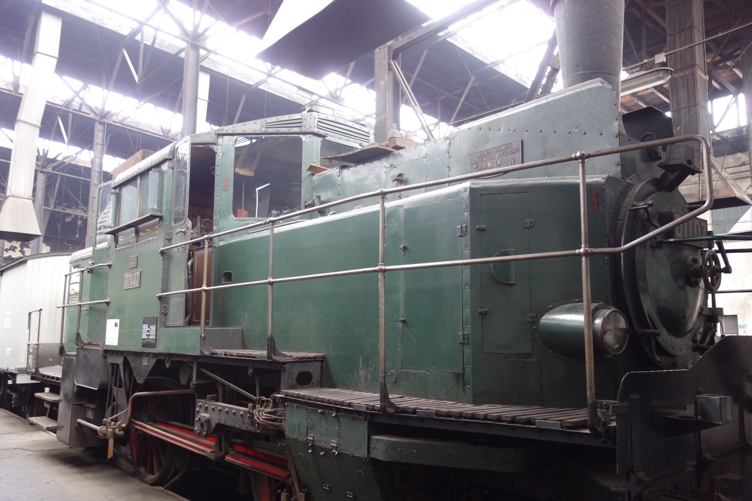 Еще один занятный экспонат - это помесь паровоза с багажным вагоном за номером DT 1.07 (Dampf Triebwagen - паровая дрезина, что ли?)