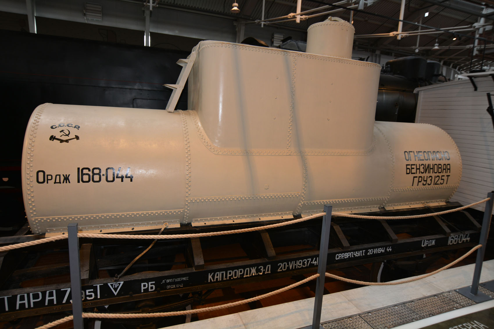 Пересматривая Ваши фотографии, удивился нескольким вещам. Первое - это обилие трофейной техники. На австрийское происхождение цистерны, стоящей возле итальянский вагона с двускатной крышей (на открытой площадке) как-то не обращал раньше внимания, платформа типа "Штутгарт" (если верно помню, приписка у нее была как раз Ленинград-Балтийский). Еще где-то в недрах крытых павильонов обретается "Оппельн" с тормозной будкой, из которого сделали на кой-то санитарный вагон. Собственно, второе, что привлекло внимание - это вольное обращение с окраской ПС. ТЭ7 в бытность нахождения на Варшавском вокзале (за пару лет всего до этого) был синим, тепловоз Гаккеля тоже менял цвета несколько раз за время пребывания в музее.