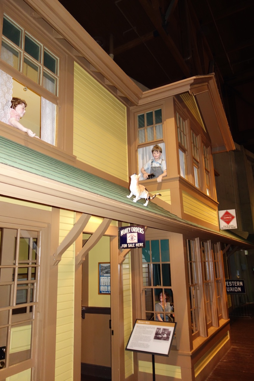 Пожалуй главным эффектом завершения трансконтинентальной дороги стало объединение Соединенных Штатов (впрочем, немалую роль тут сыграла и Гражданская война, совершенно не затронутая в данном музее). Теперь люди и грузы могли относительно легко перемещаться по огромной территории и начался золотой век индустриализации. Вот, как видят создатели музея ее влияние на повседневную жизнь граждан