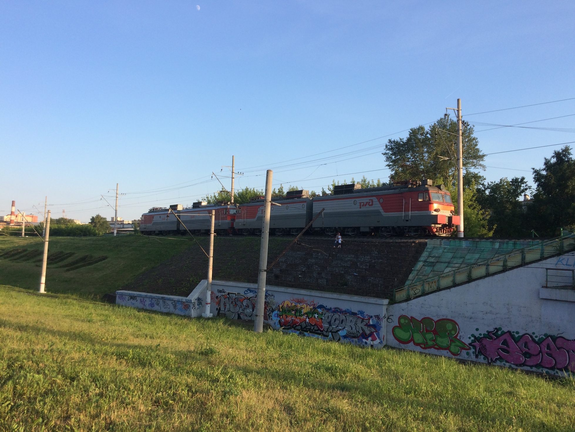 Прогуливались на днях вдоль железки. В очередной раз поймал пассажирский, с прикупленным в хвосте дефектоскопом.
