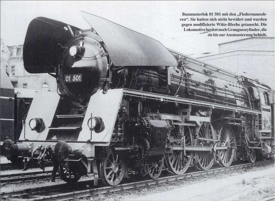 Соответственно самым первым, а значит и экспериментальным при модернизации стал 01 501. Некоторые узлы и варианты исполнения испытывались также на локомотивах с 502 по 509, но на 501 припала самая большая доля вариантов. Самым интересным из них был вариант, получивший прозвище "Fledermaus-Ohren" (Уши летучей мыши). Данный вариант имел уже замененный котел и измененную раму, но еще не был обвешан привычным количеством оборудования, характерного для 01.5-й серии. Также, паровоз бегал с тендером 2'2'Т32 (как у BR 02 или BR 43) вместо стандартного как у 01.