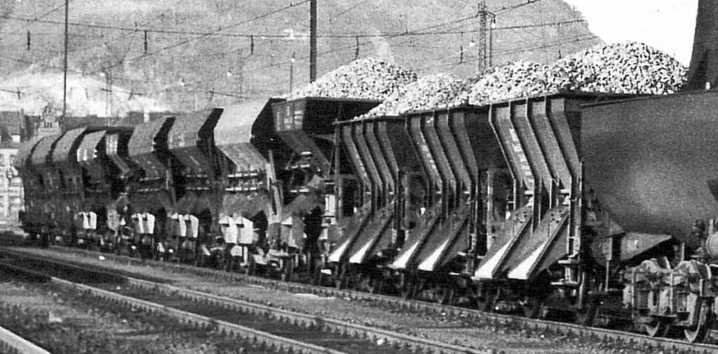 сразу в авто.Жаль фотки маленькие. В одном составе мог быть десяток хопров различных конструкций. Интересные опрокидывающиеся двухосные думпкары.