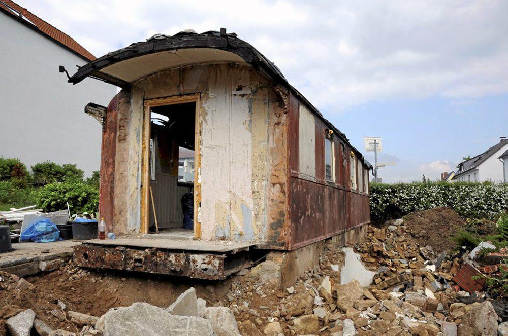 Продолжим.Вот так выглядит вагон-туалет по немецки. Этот,как оказалось,редкий тип вагона был замурован в здание еще