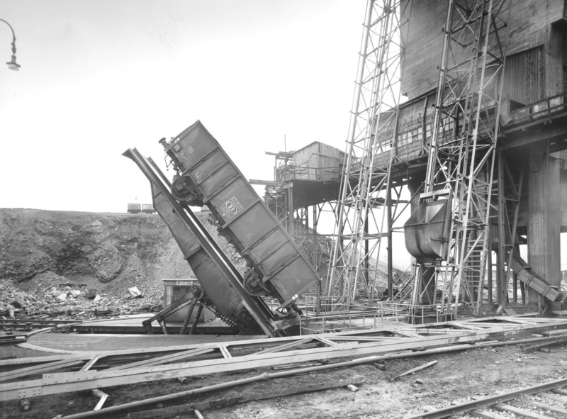 Разгрузка полувагона на заводе.