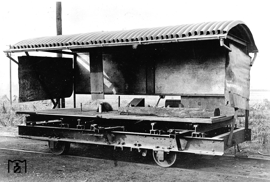 Здесь мобильная циркулярная пила для обработки древесины шпал. (1932)