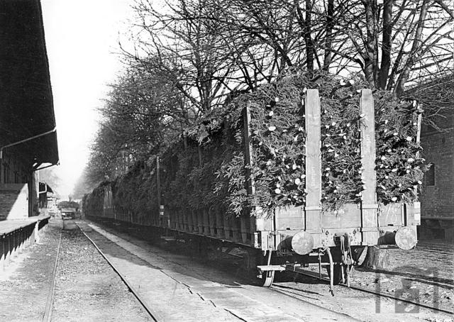 Загруженный вагон рождественскими елками на неизвестной станции в RBD Штутгарт. (1932)