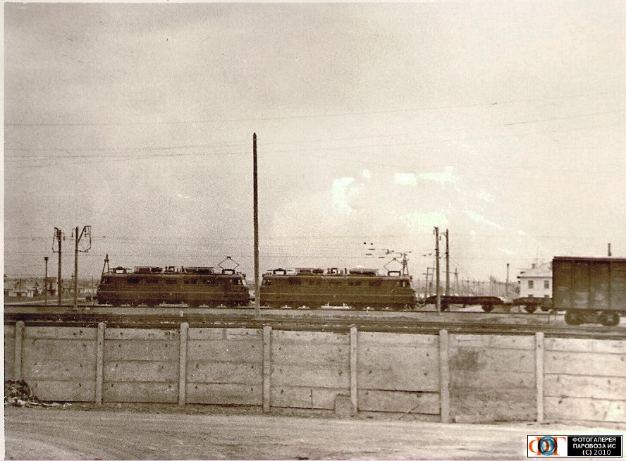 2) Идущие двойной тягой ВЛ60 с двухосными платформами выглядят несколько необычно. 1967 год.