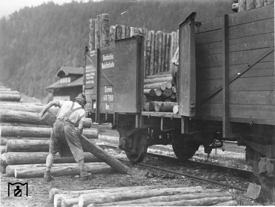 Встречалась практически на всех грузовых дворах и пакгаузах.(1930й год) Перевозка небольшого катера на платформе.Интересен как груз. Непонятные мне пока полувагоны оборудованные крышами. Вокзал в Шварцвальде,1934й год.Погрузка древесины.Вручную...