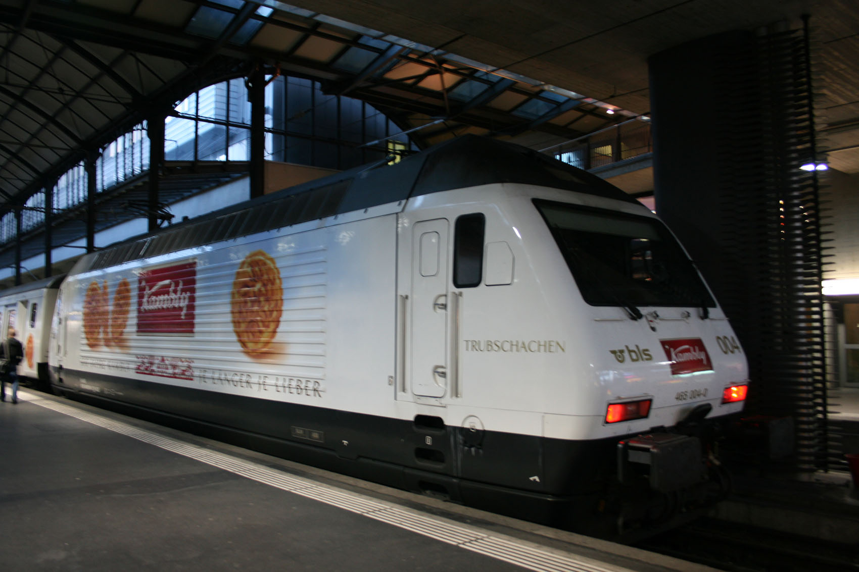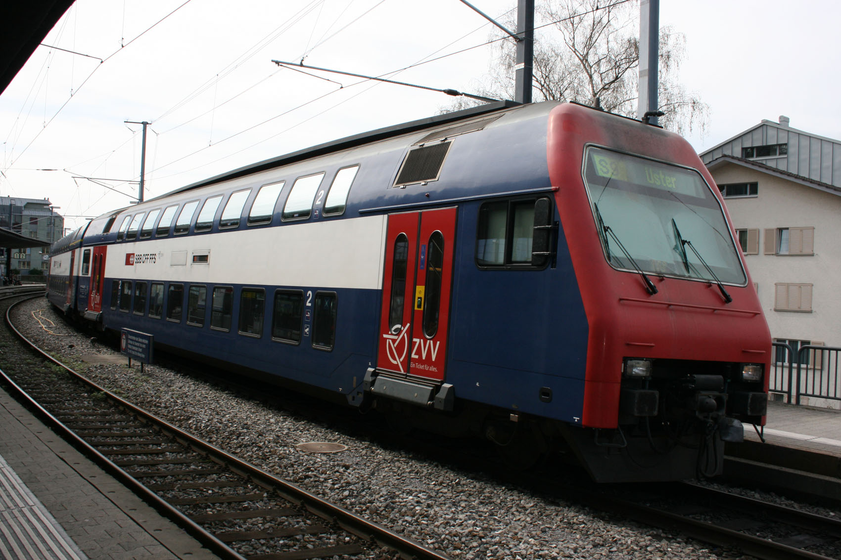 "Re 450 — четырёхосный пассажирский электровоз железных дорог Швейцарии используемый с двухэтажными пассажирскими вагонами как S-Bahn в Цюрихе. Как правило электровоз работает с трёхвагонными сцепками двухэтажных вагонов. Задний вагон такой сцепки — головной вагон и имеет кабину управления из который машинист локомотива может управлять электровозом" - говорит нам Википедия. Интересная система!