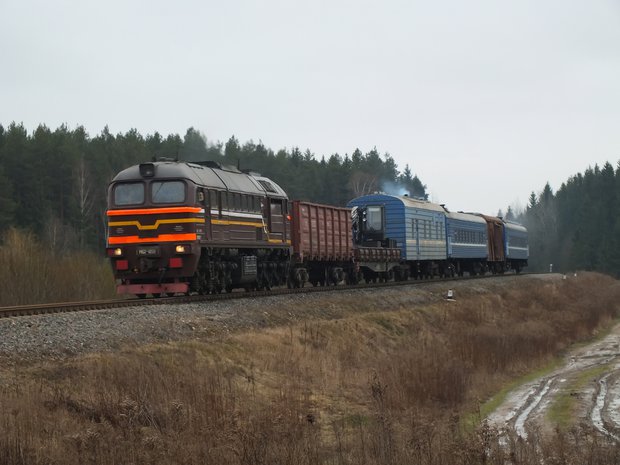 Со страной Советов все гораздо печальнее, но тоже можно найти нечто такое: Или такое: Также встречались половинки ТЭ3 с пригородными поездами. А вот по США ничего подобного нет вообще! Только громадные поезда...