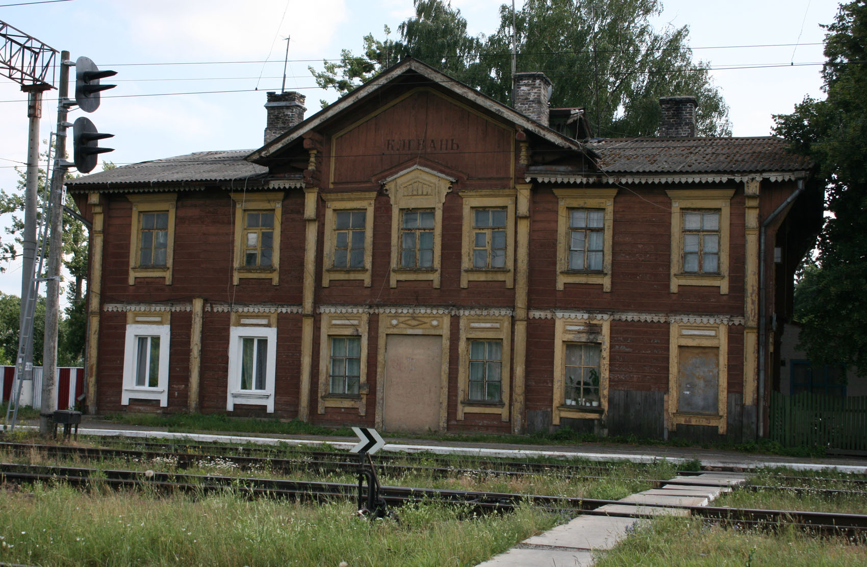 Следующая моя авантюра была связана с поездкой собственно в КлЕвань. "Тоннель любви" на картинках очень интригующее зрелище. От самой станции начала ХХ века сохранилось станционное здание, на нем даже видна надпись, используется, как жилое, хозяйственная постройка и водонапорная башня.