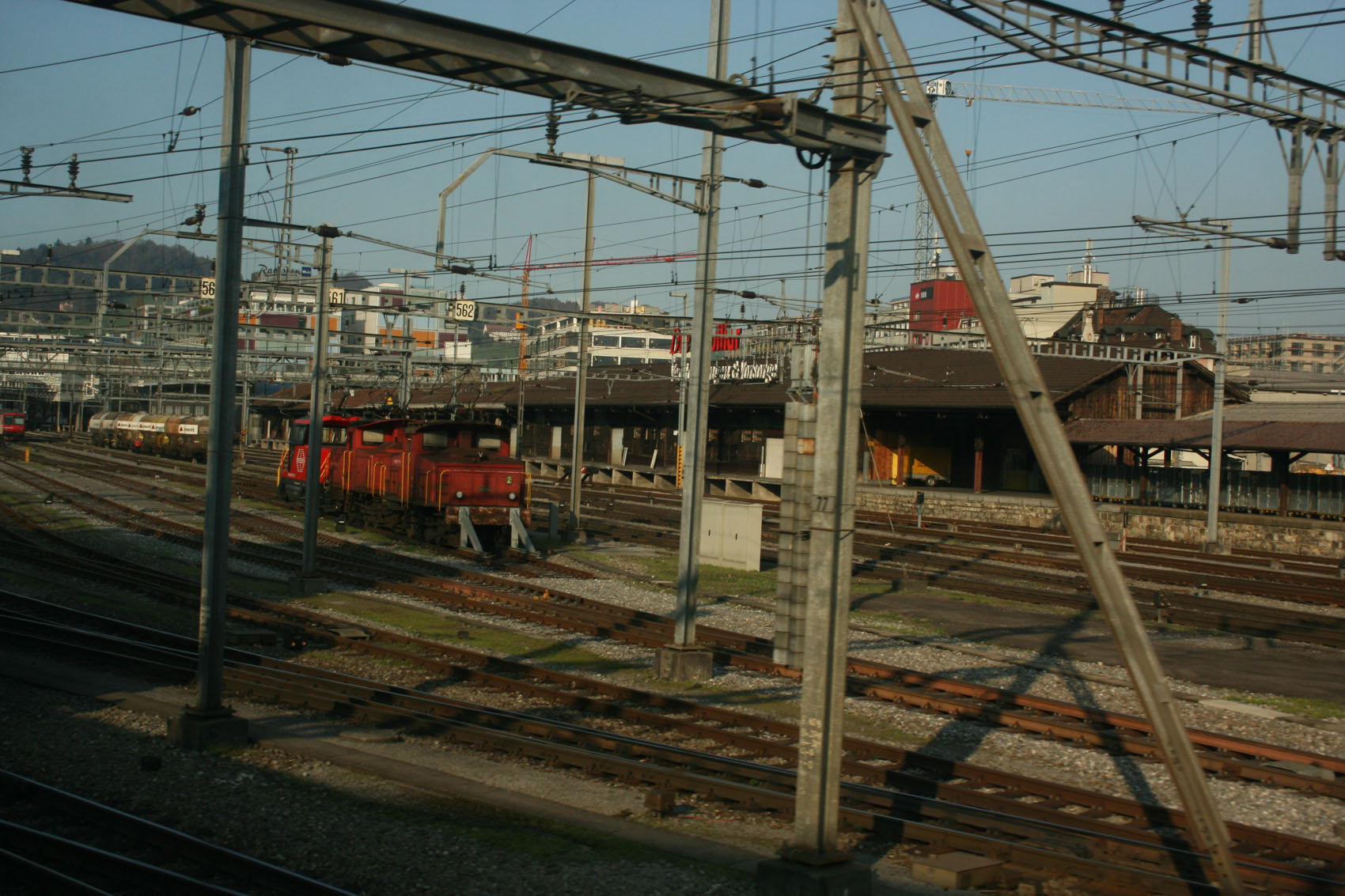 Может это не интересно, но место мне показалось довольно колоритным. Все это хозяйство работает с точностью часов и верно служит воротами одному из красивейших Швейцарских городов. В котором, кстати, расположен Музей транспорта Швейцарии с богатой железнодорожной экспозицией. Увы, посетить не удалось... Пока, я надеюсь ;)