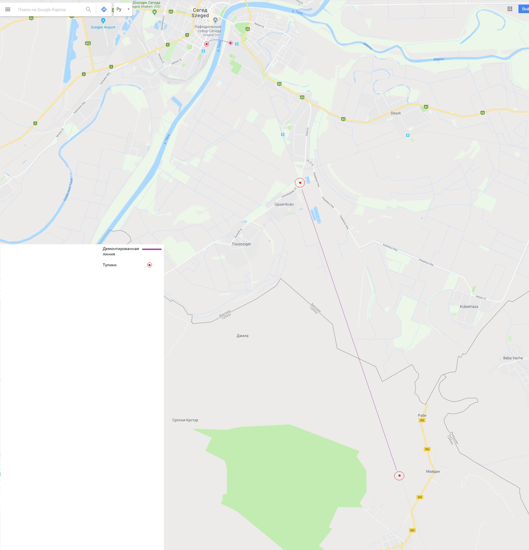 Кстати, последняя уже в наше время (где-то после 2010-го) полностью разобрала участок пути от Банатско до Кикинды и, соответственно всю инфраструктуру тоже. Если переключить гугл-карты на режим “спутник”, то видно следы от гусеничной техники, остатки насыпей и только места от полностью демонтированных станций, депо и прочих ЖД сооружений там, где сама гугл-карта еще пока их показывает. Но это уже тоже другая история...